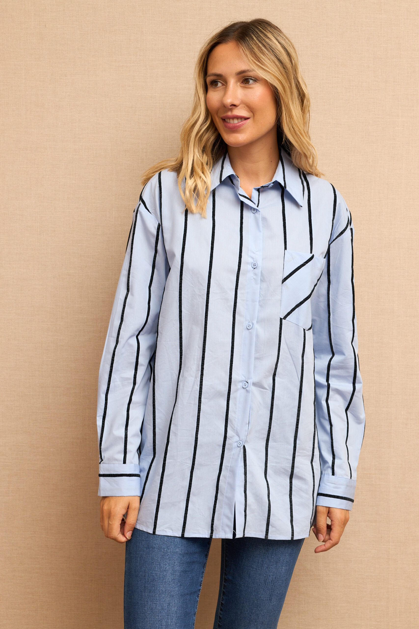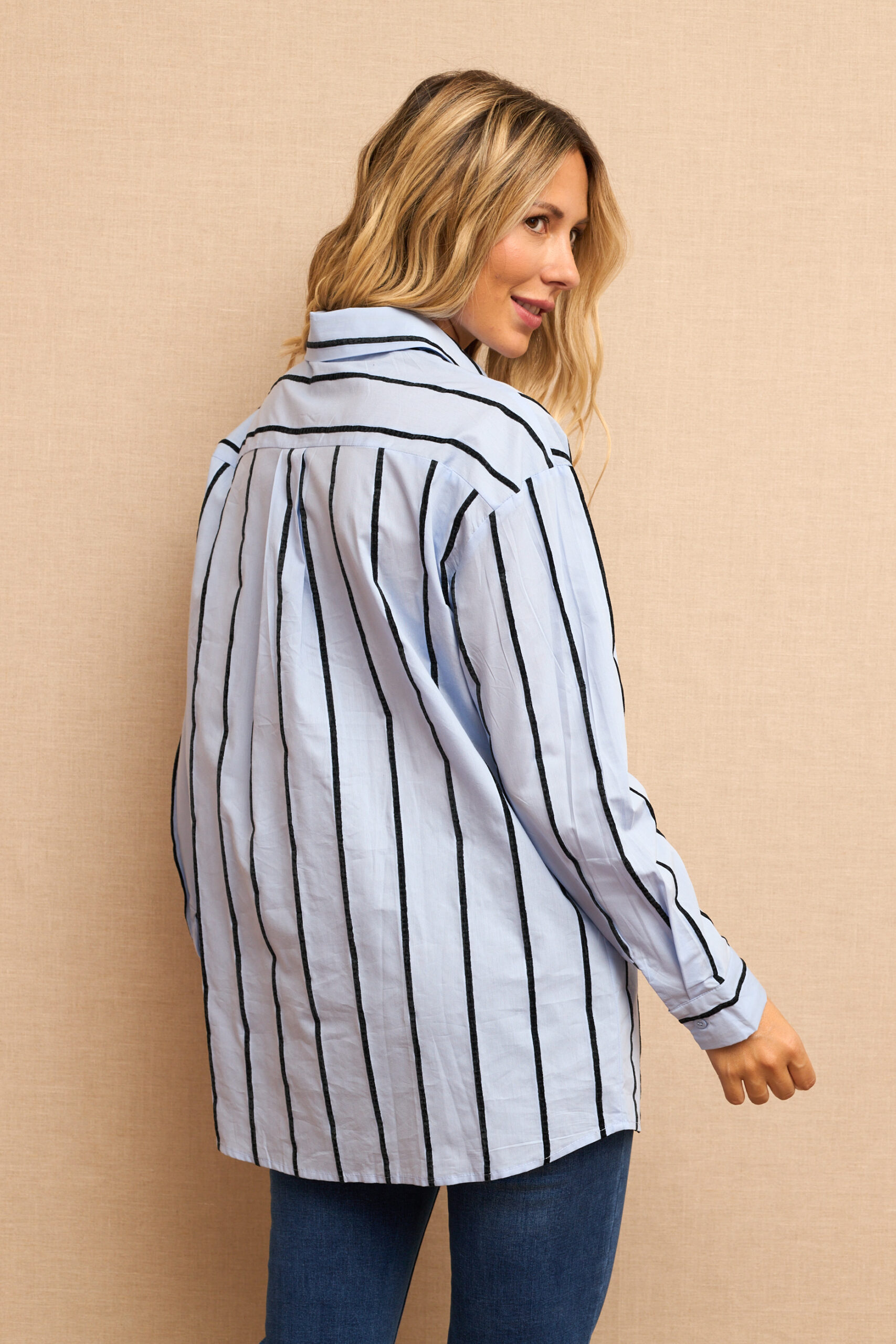 Camisa Azul Estampado Rayas Manga Larga