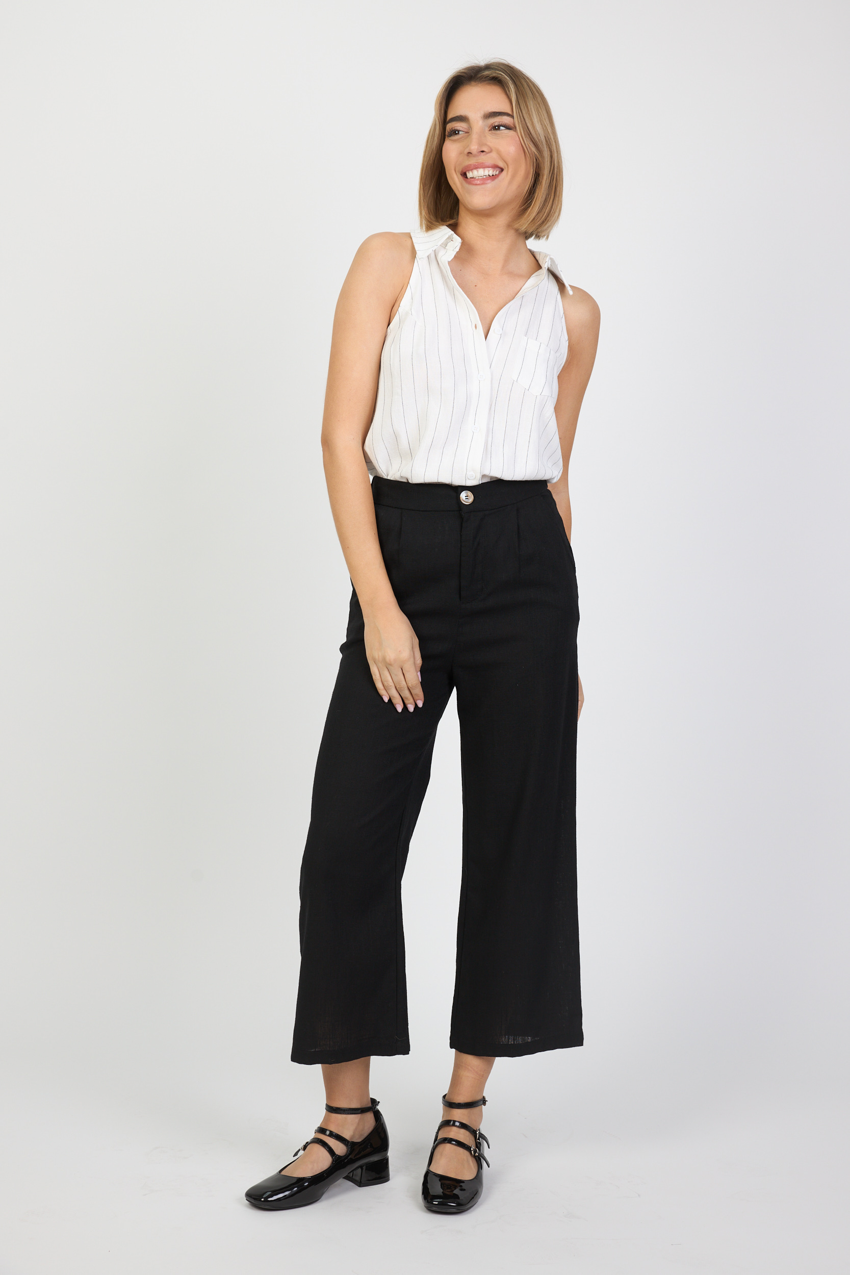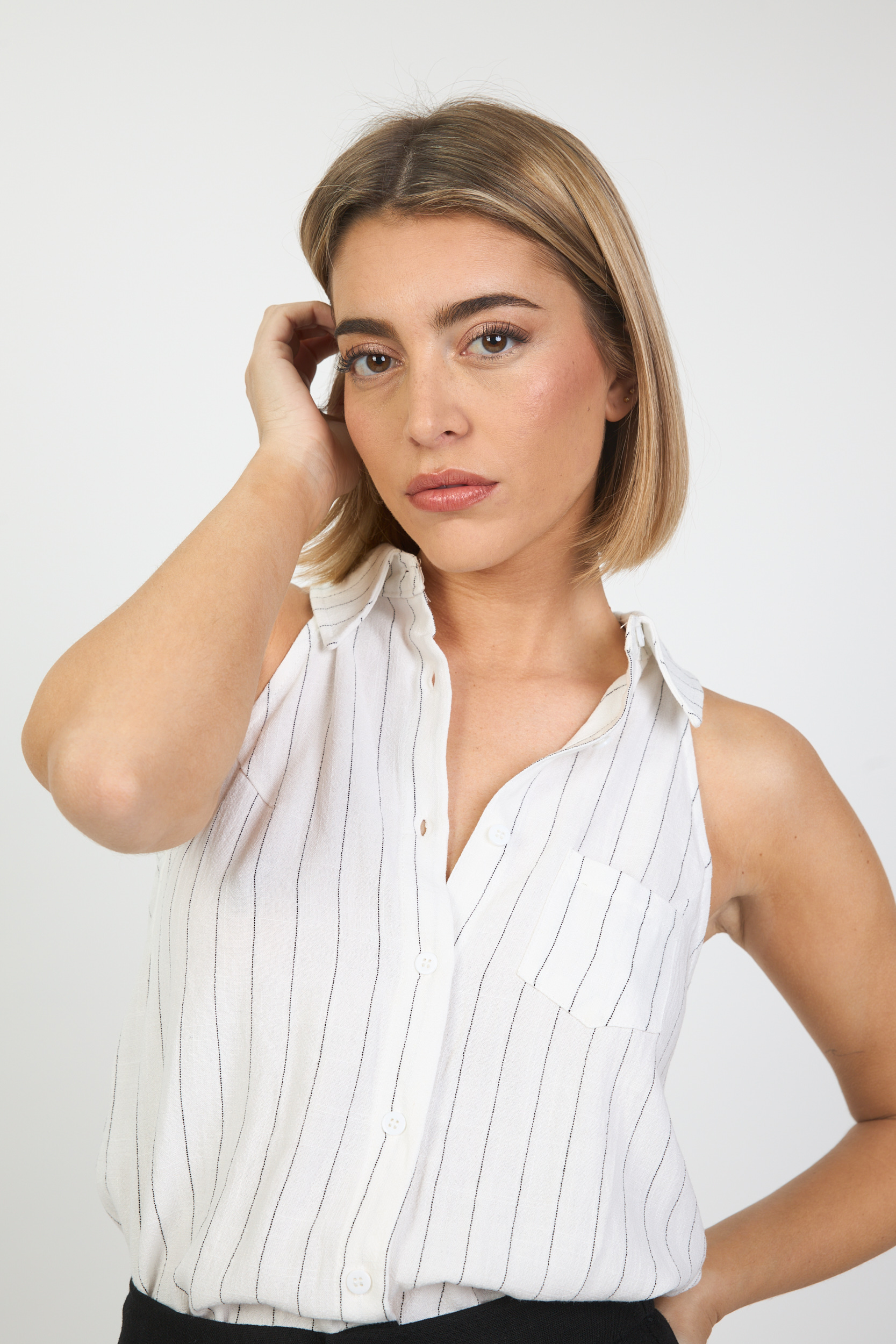 Camisa Blanca Manga Sisa Estampado Rayas