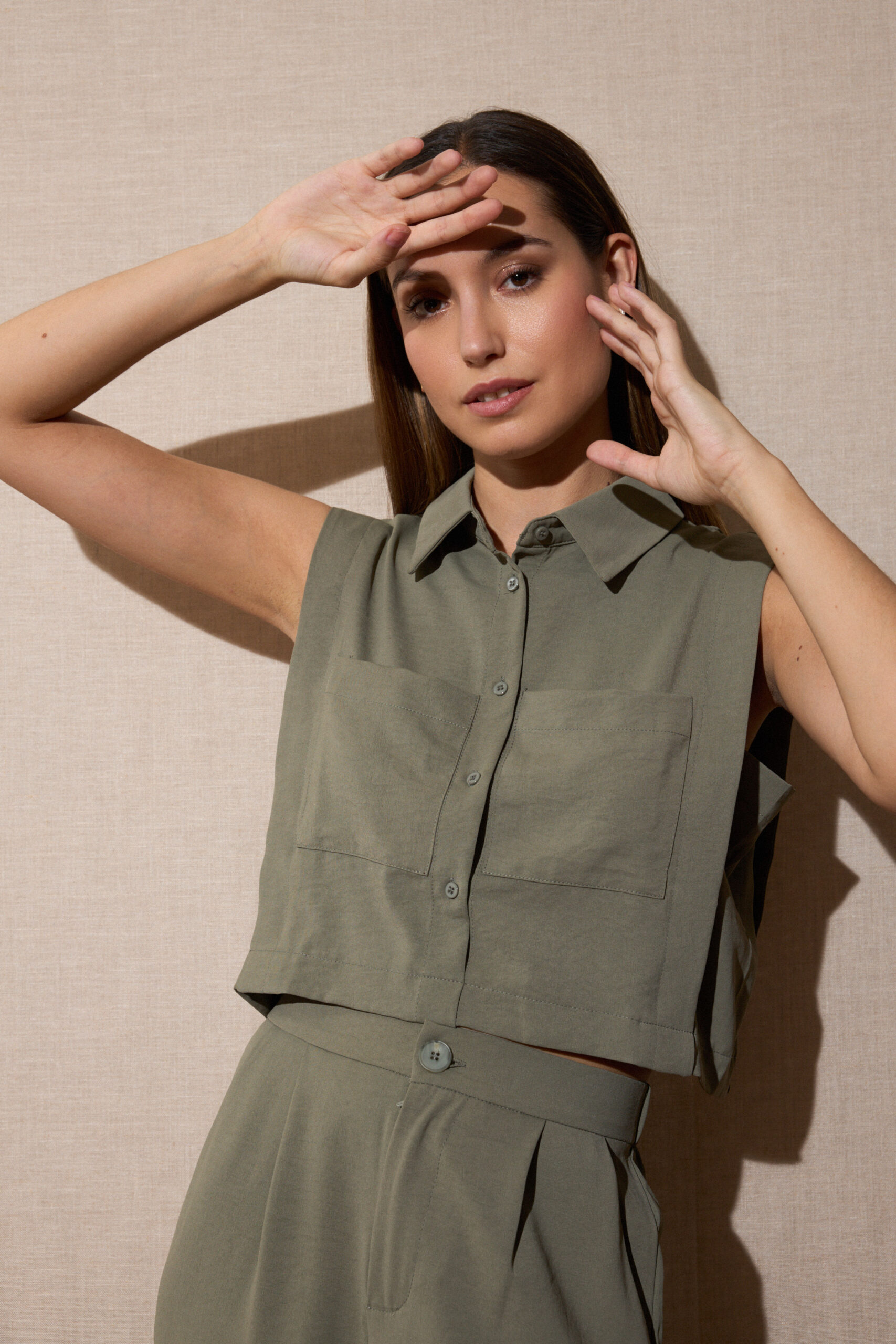 InicioRopa al Por Mayor de MujerCamisa y Blusa de Mujer Camisa Corta Khaki Bolsillos
