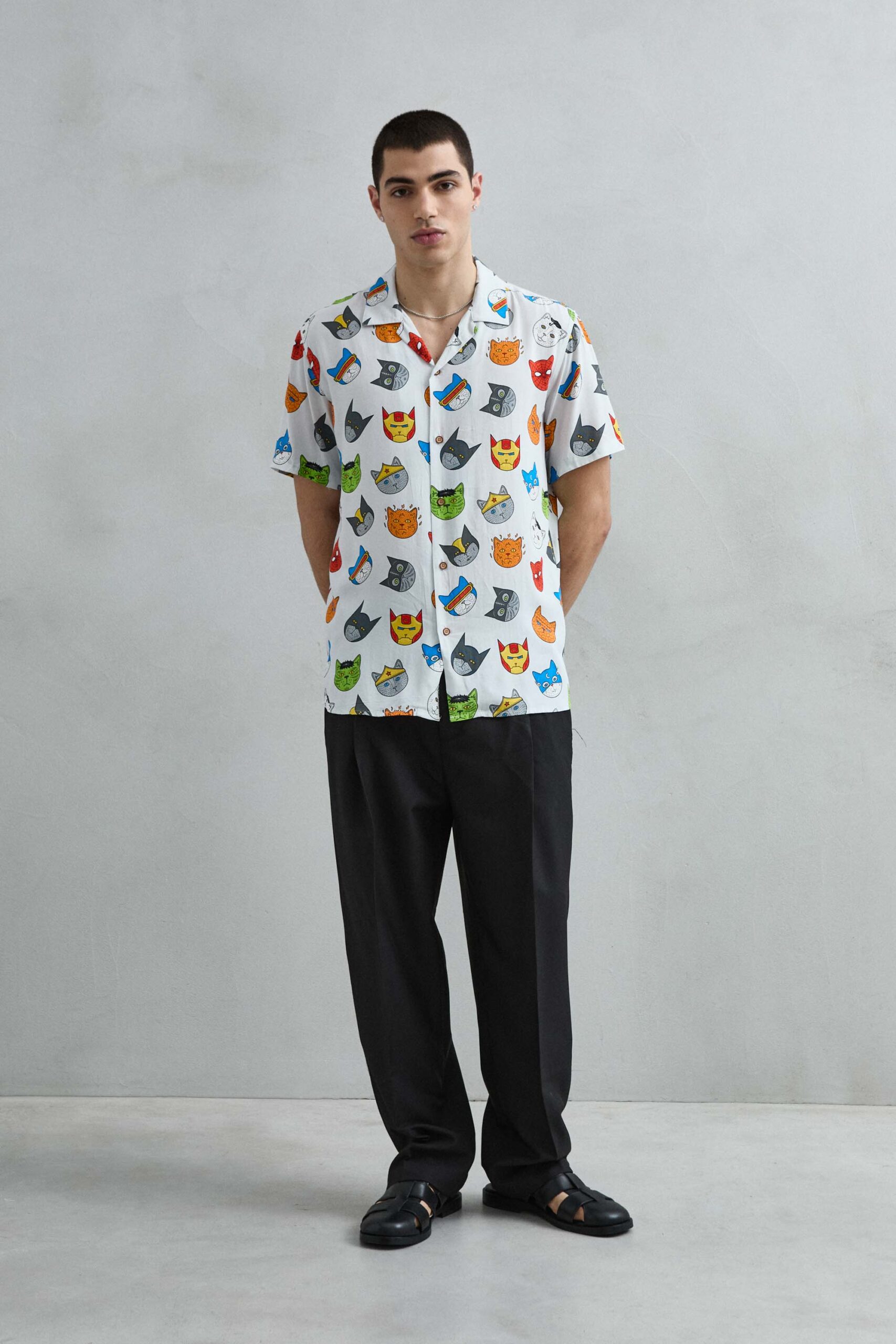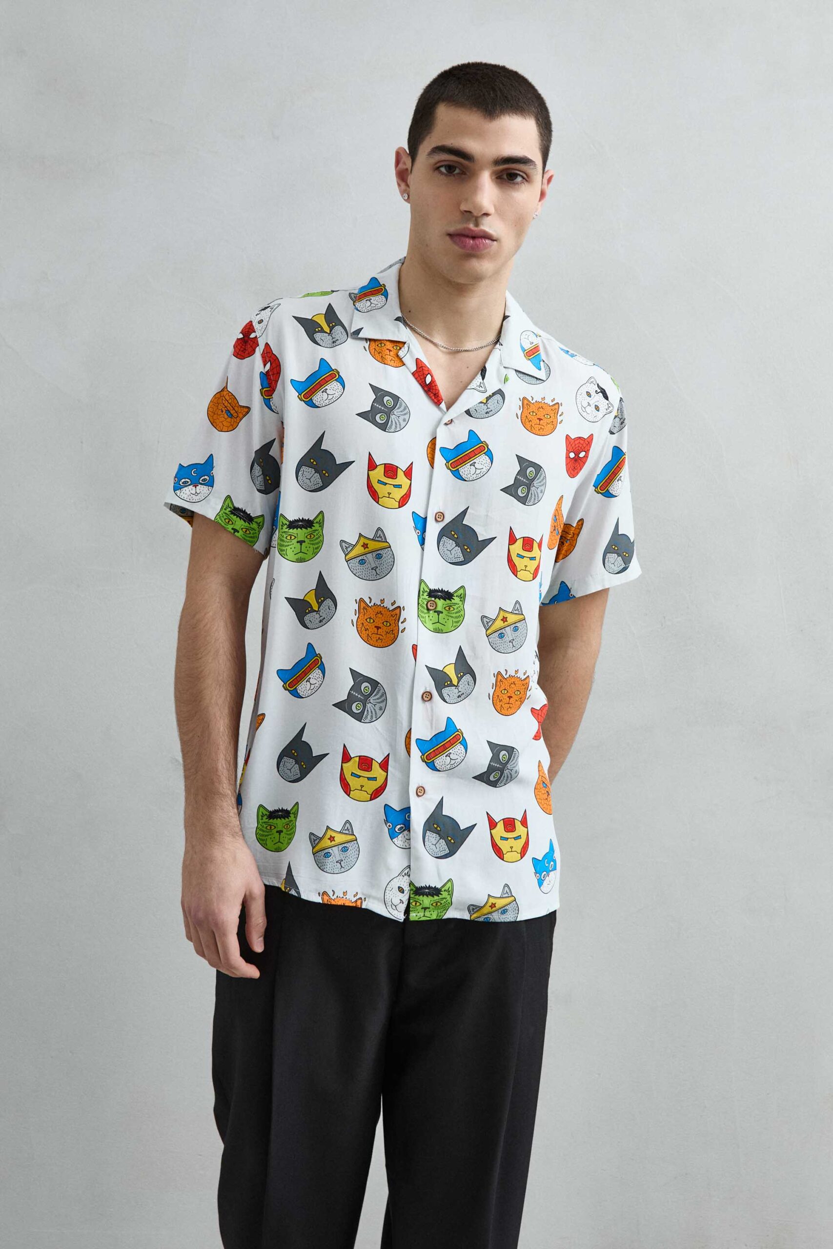 Camisa Hawaiana Gatos Superhéroes
