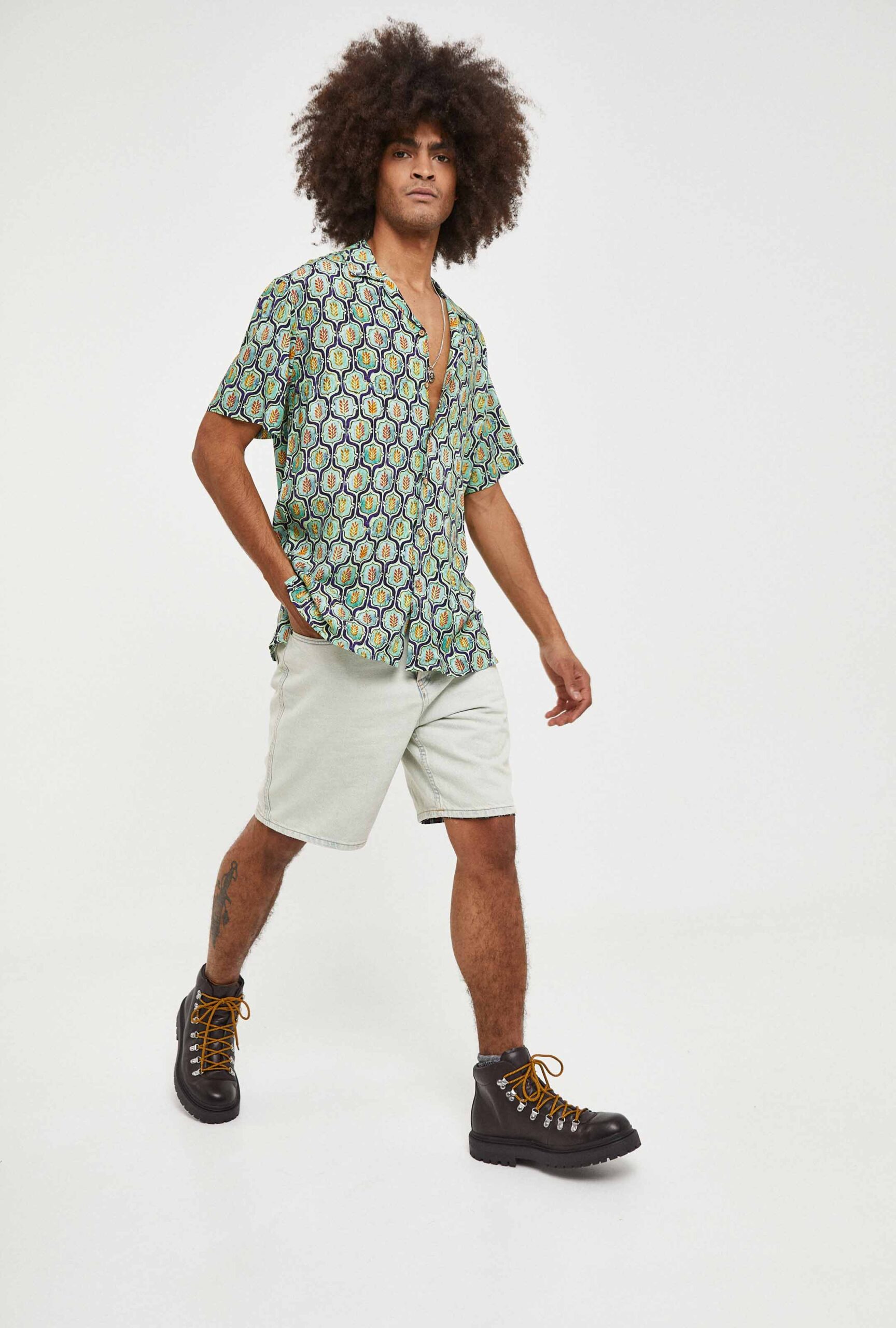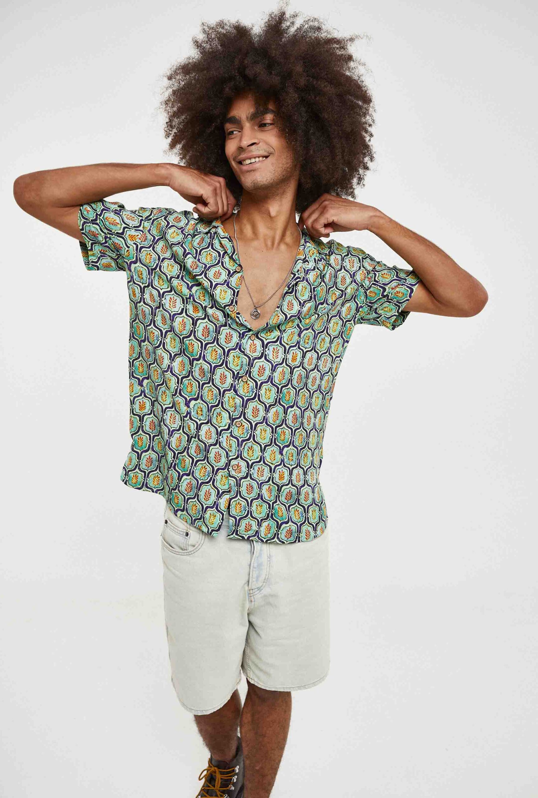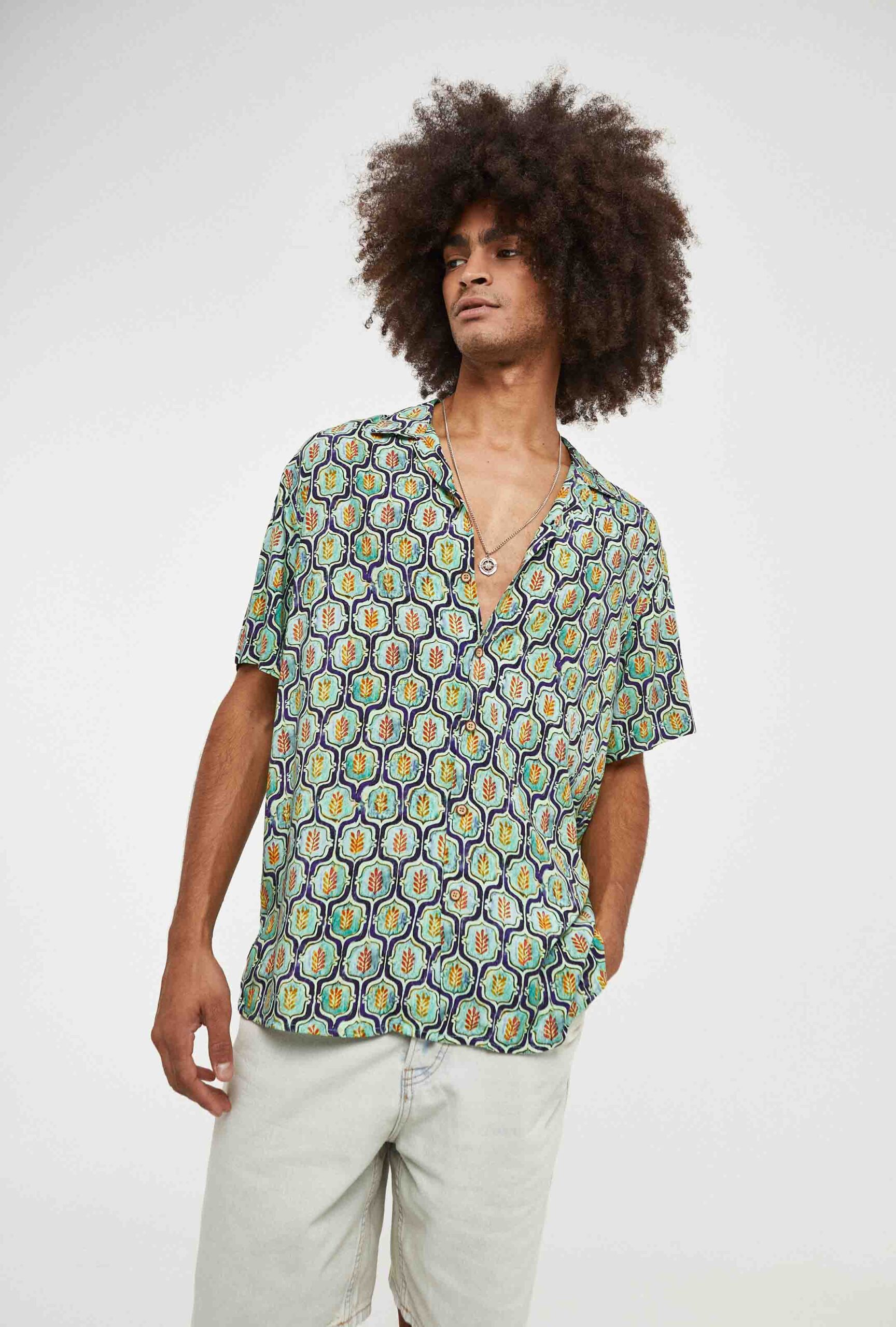 Camisa Hawaiana Verde Estampado Espigas