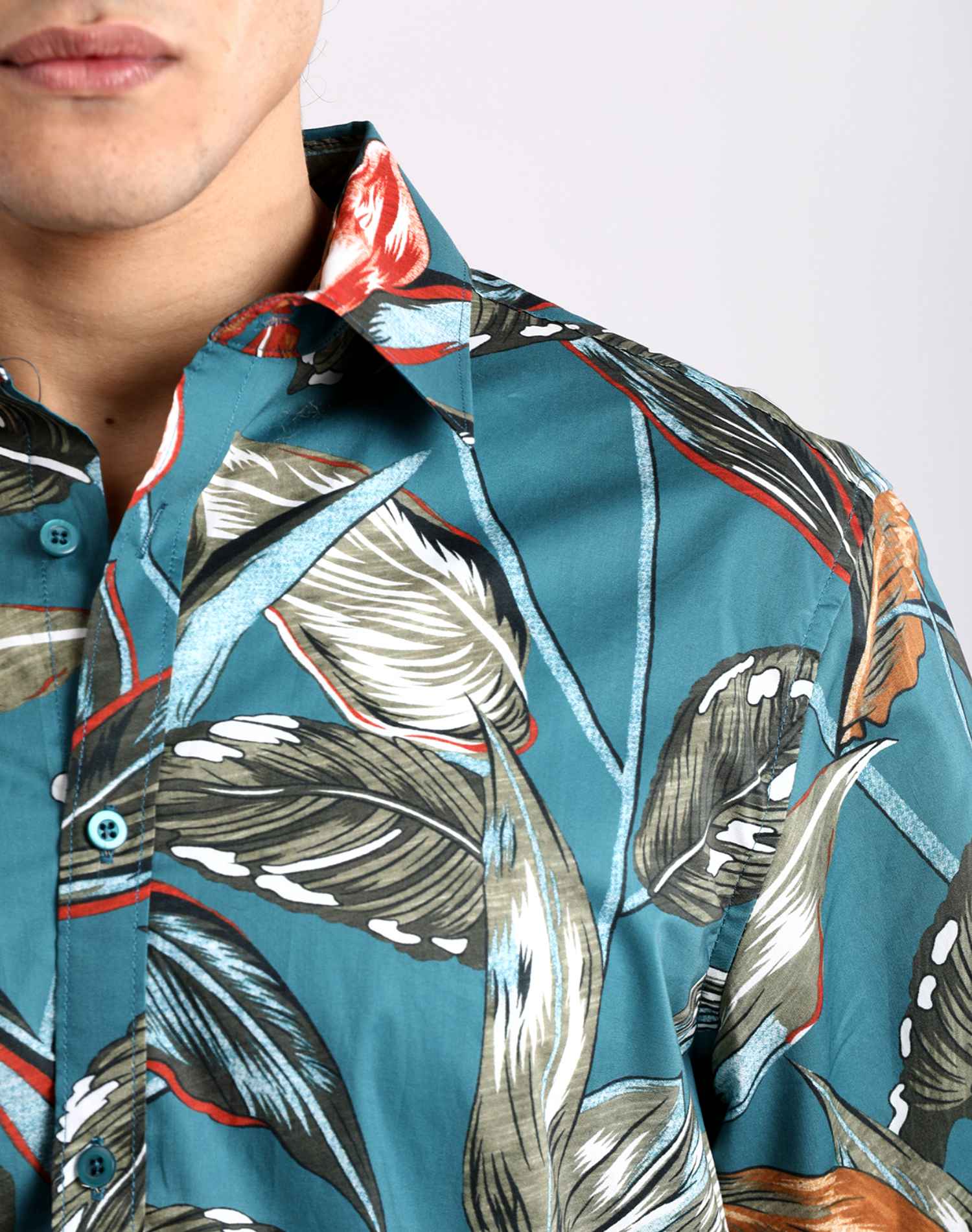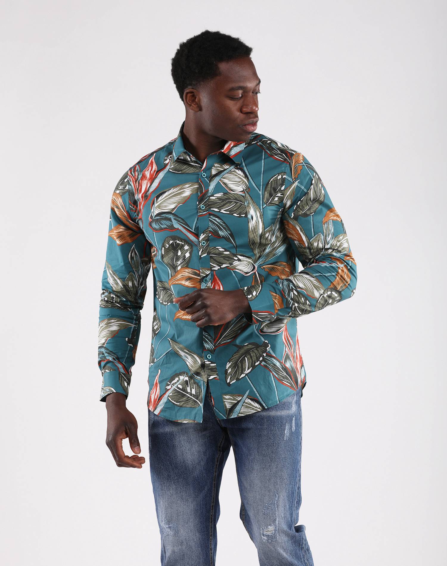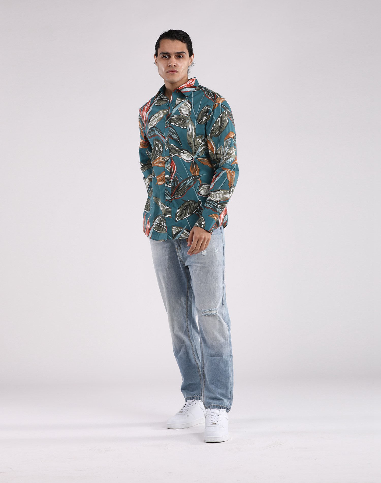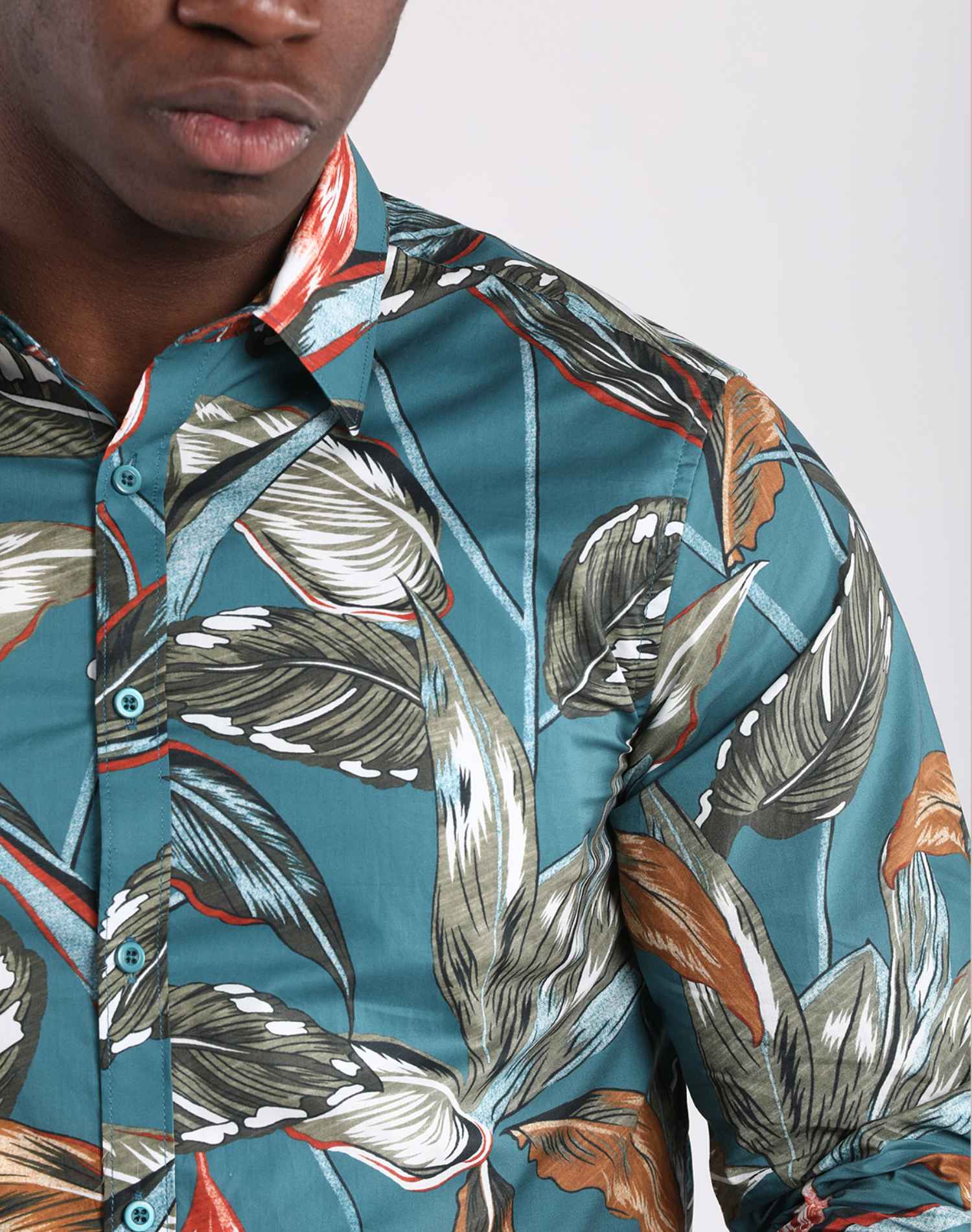 Camisa Manga Larga Verde Oil Estampado Hojas