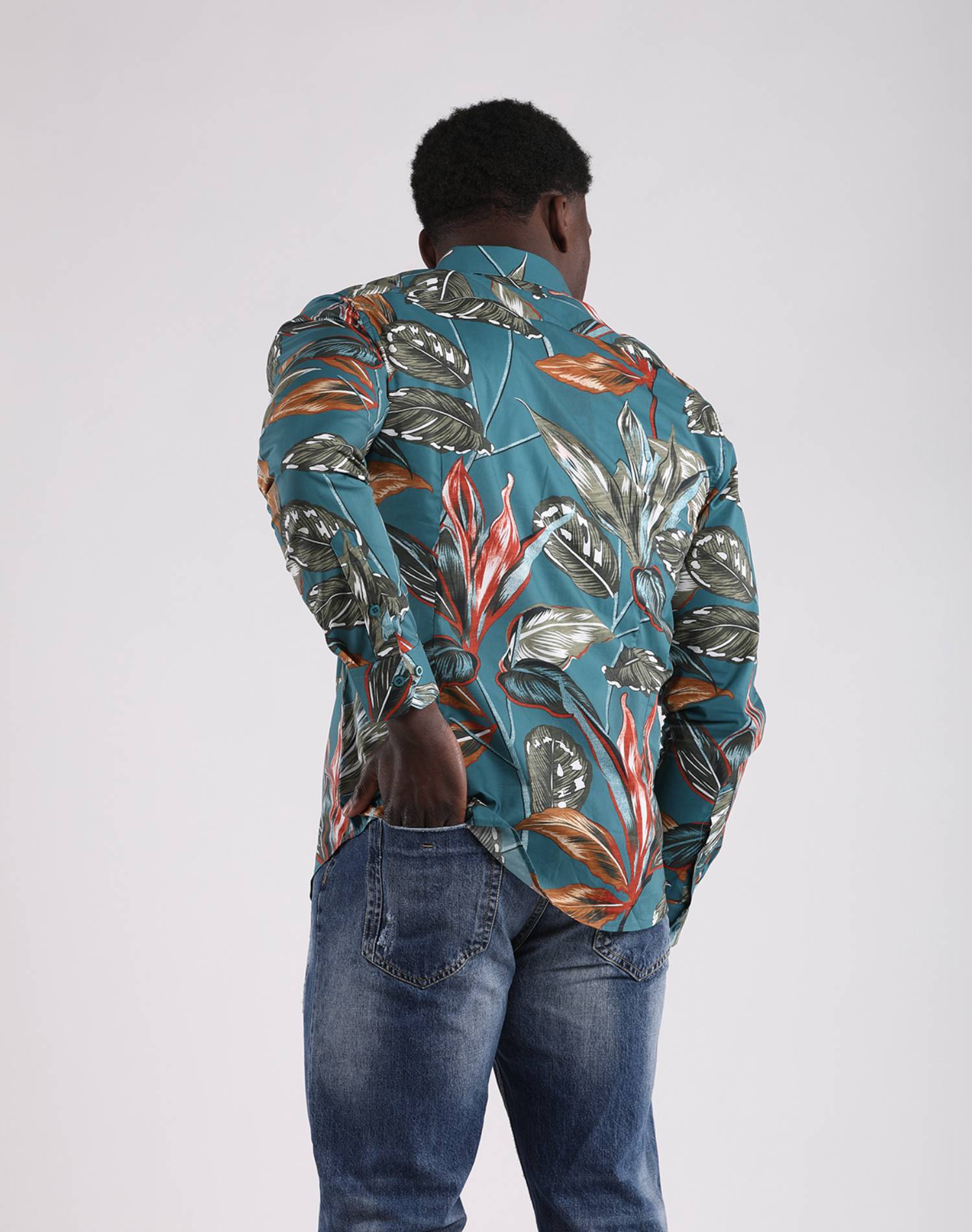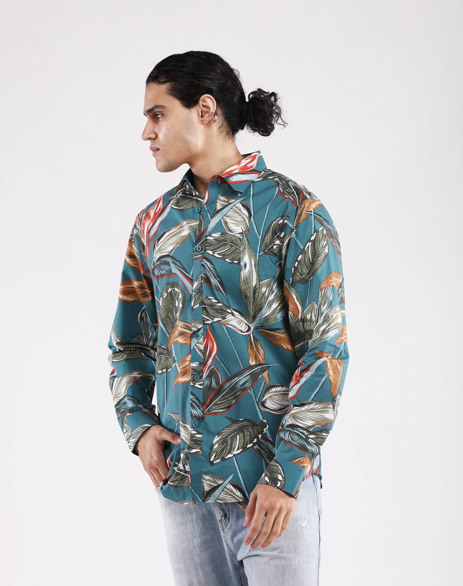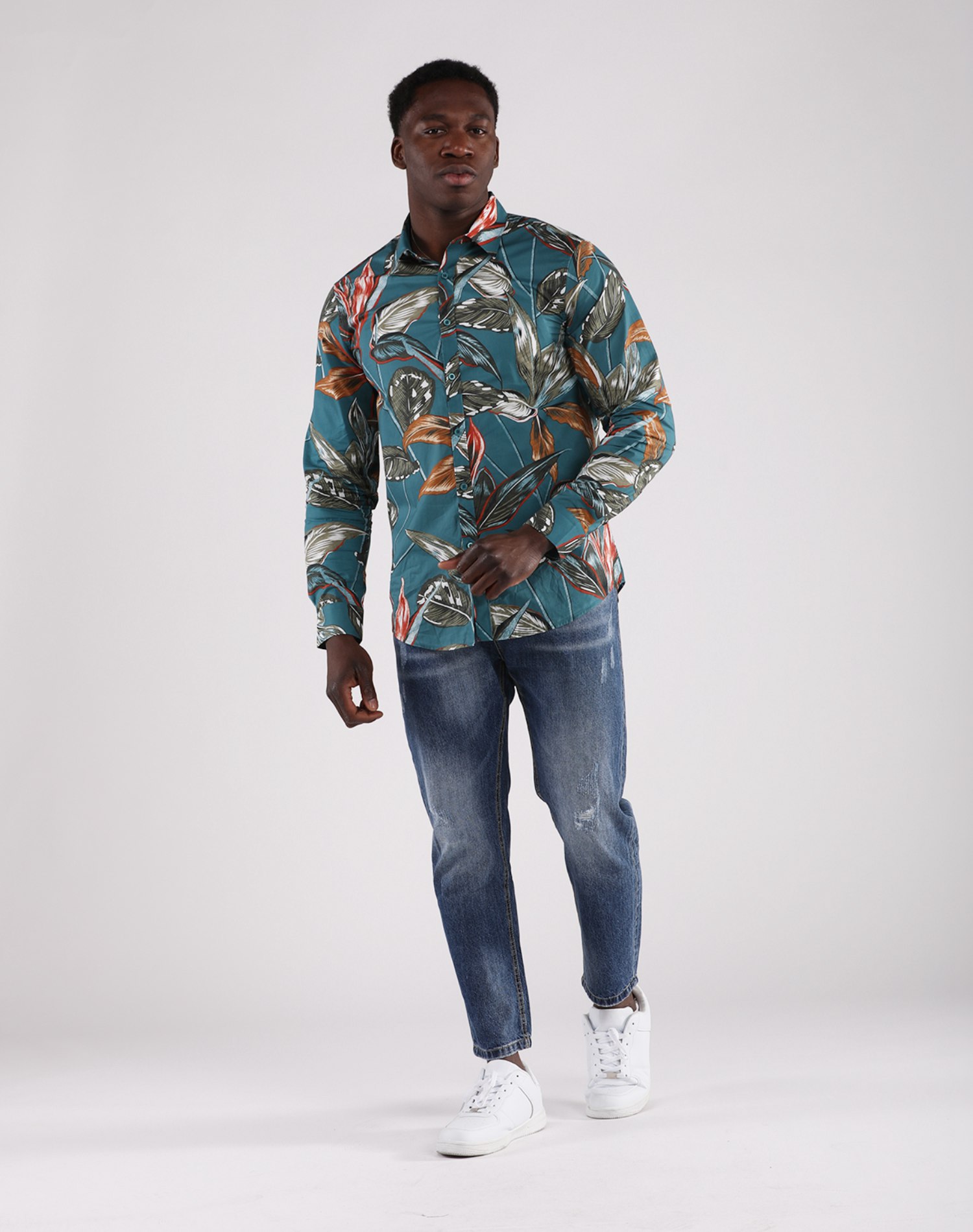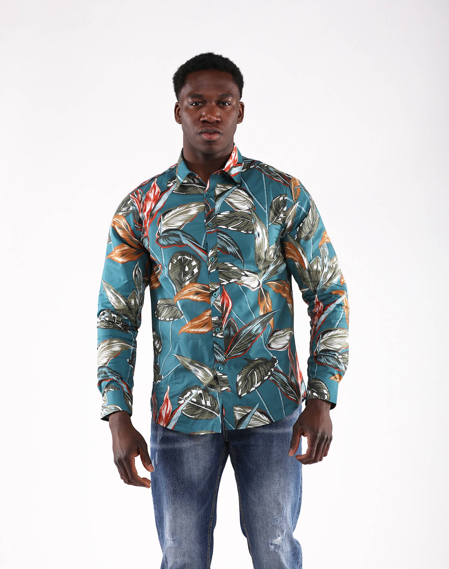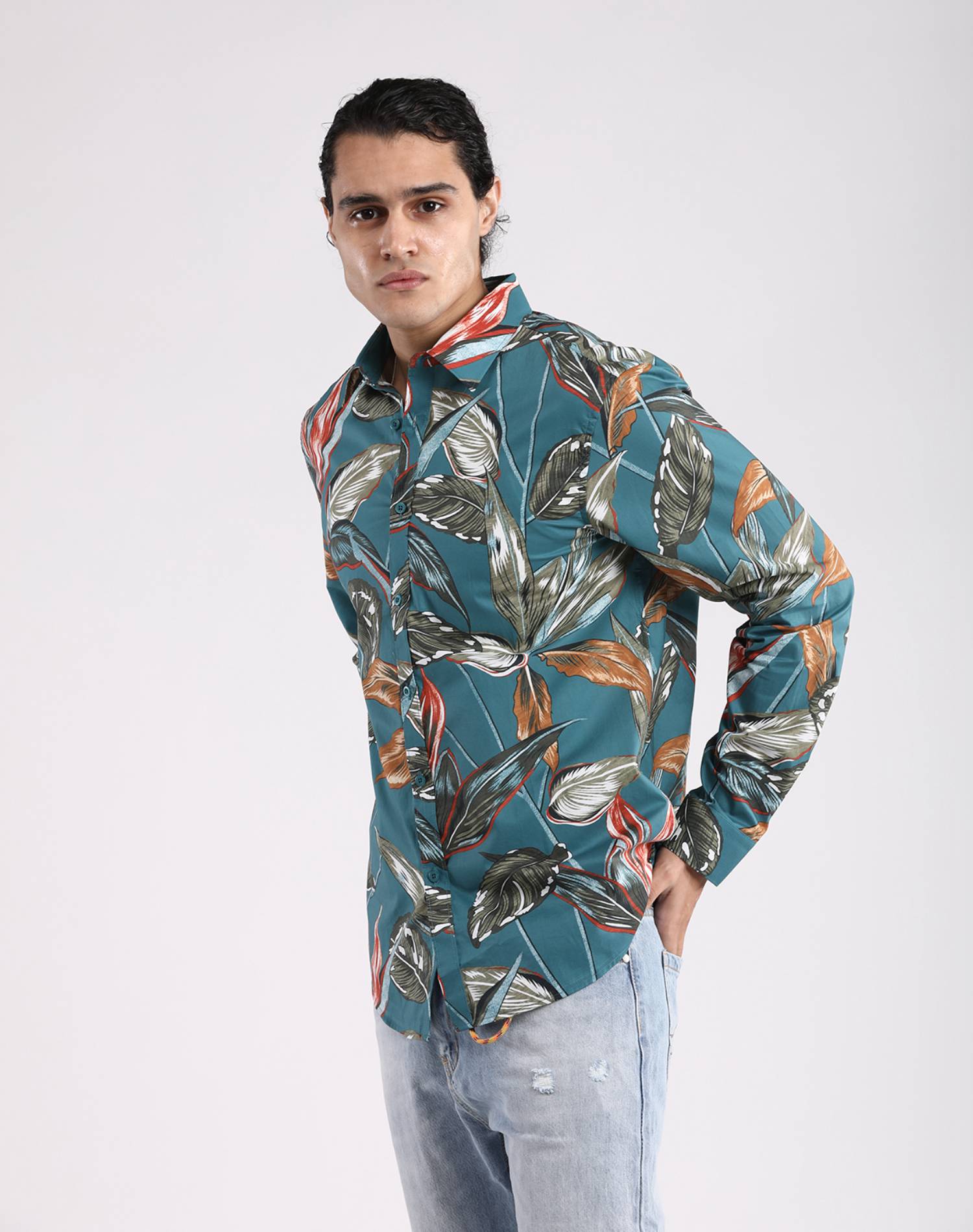 Camisa Manga Larga Verde Oil Estampado Hojas