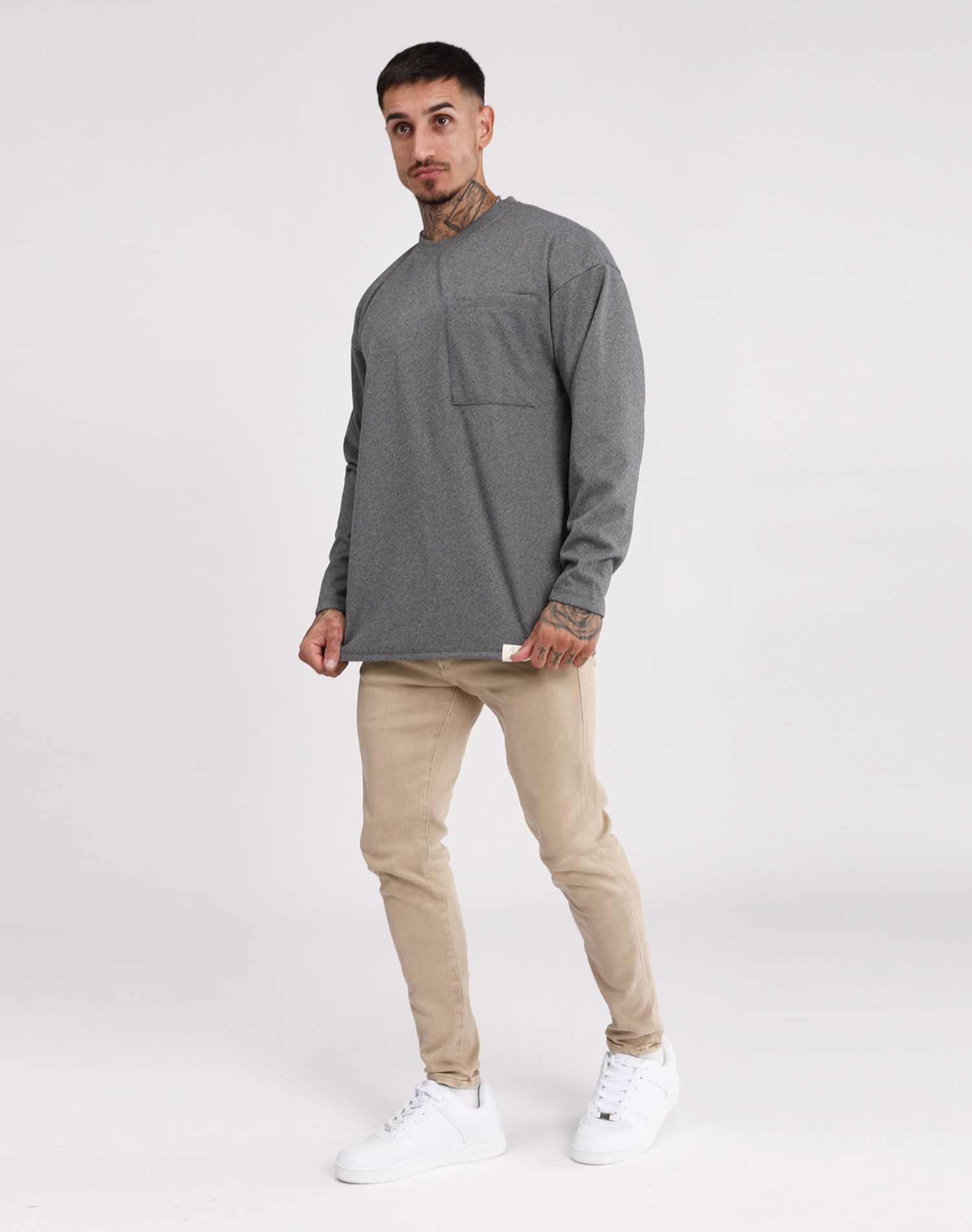 Camiseta Básica Bolsillo Gris