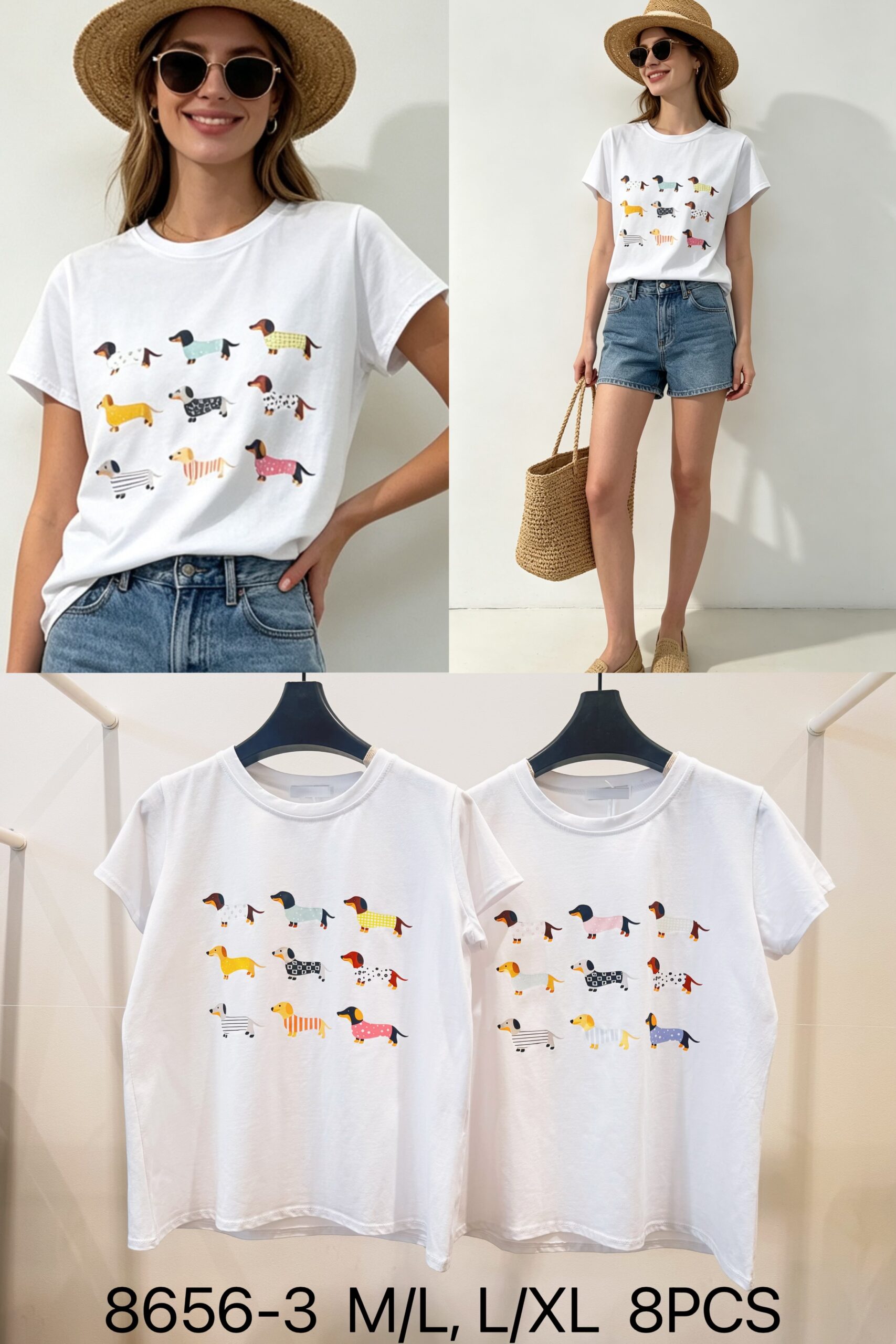 Camiseta Blanca Estampado Perro Salchicha