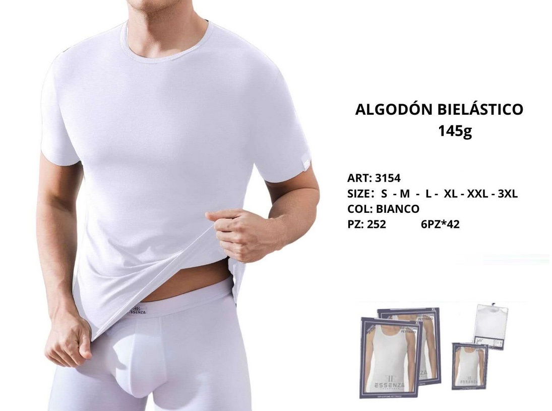 Camiseta Blanca Interior Hombre Manga Corta