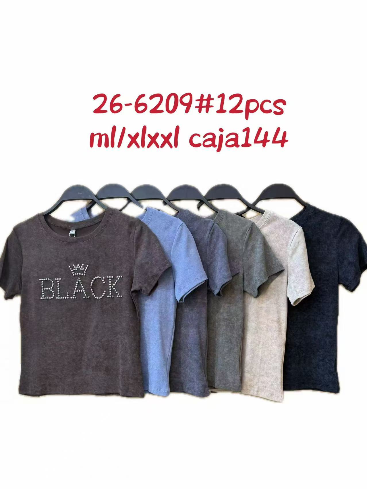 Camiseta Manga Corta Algodón Lavado Detalle Strass