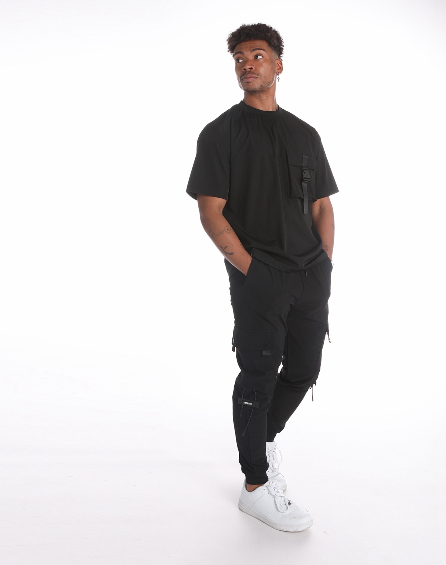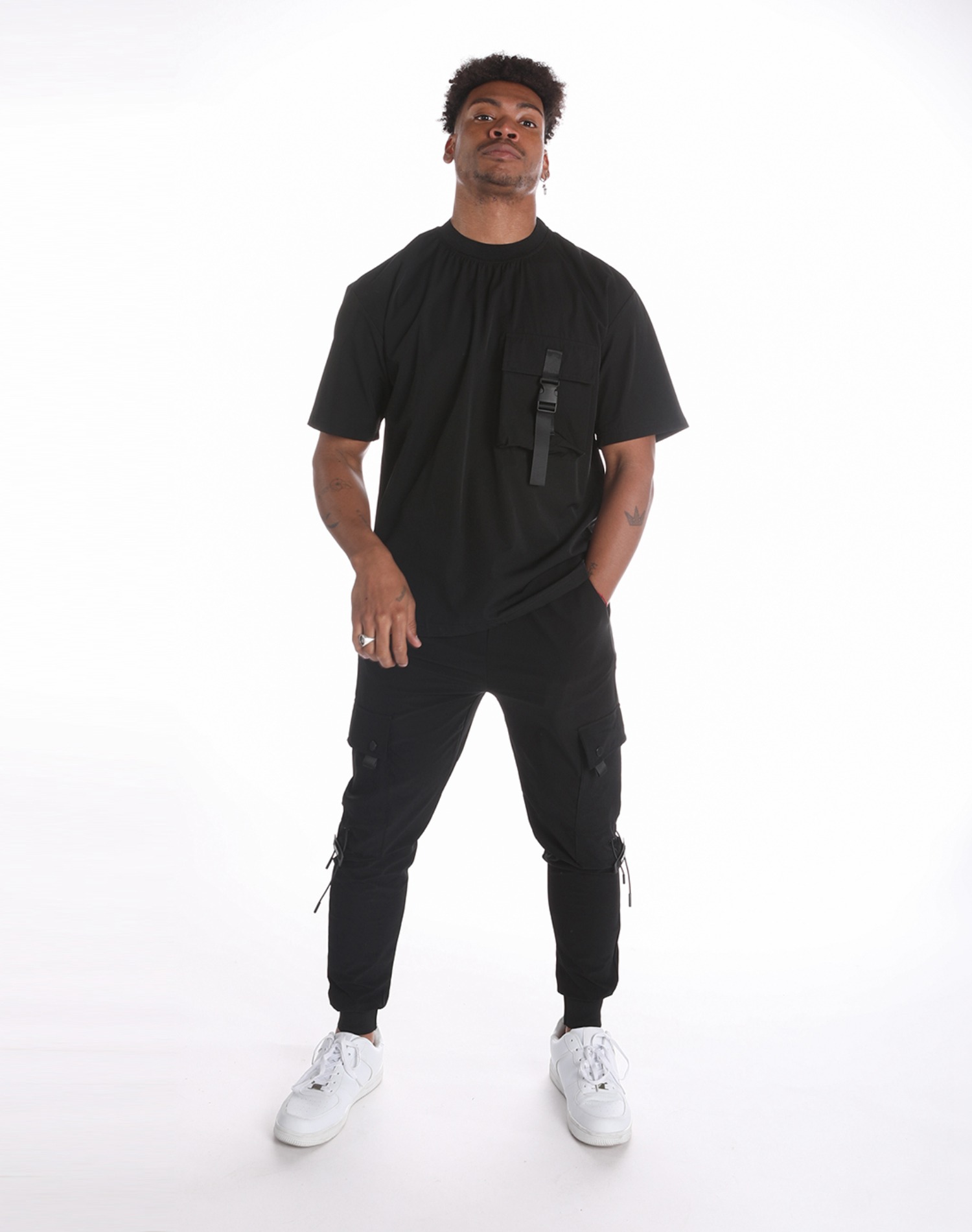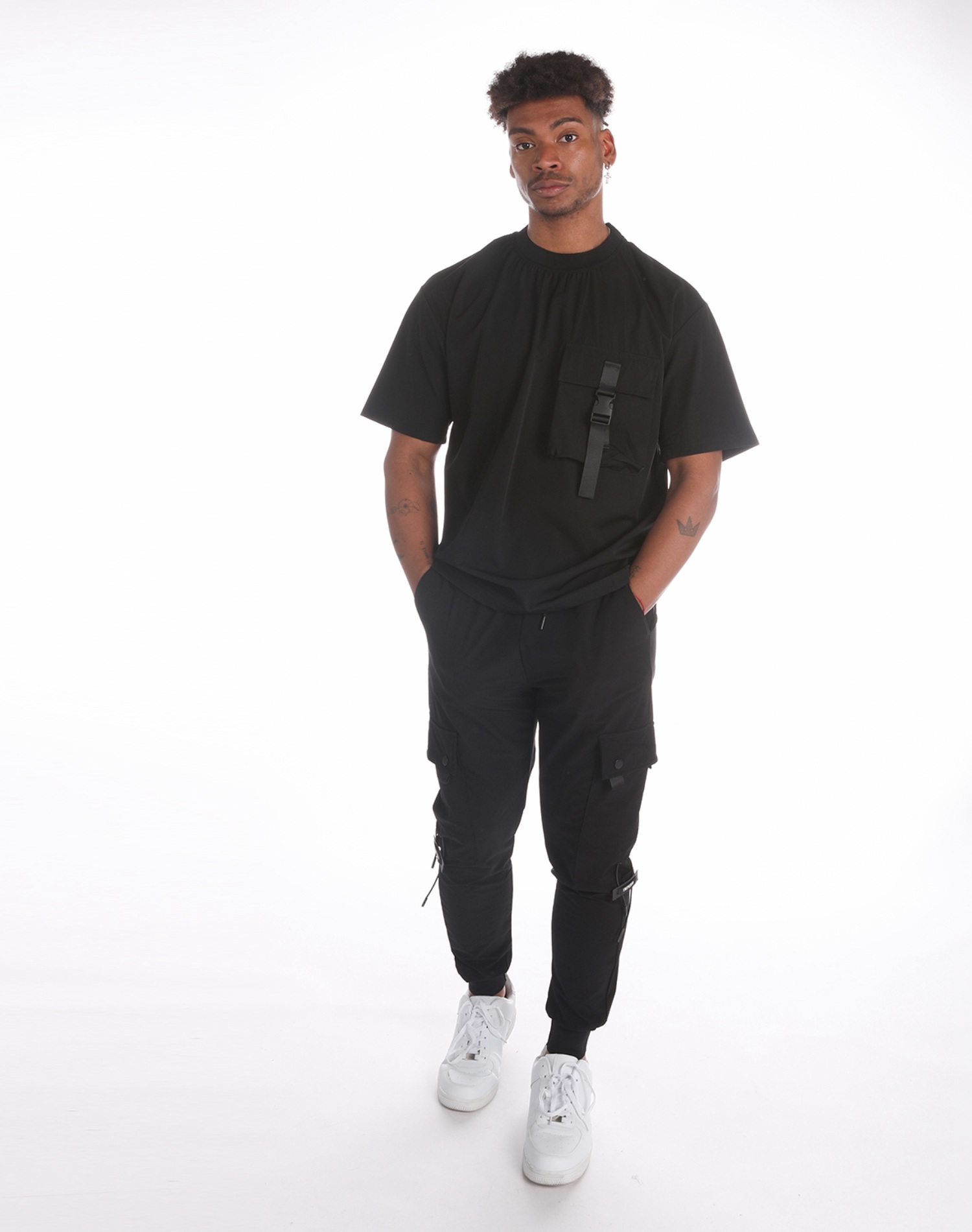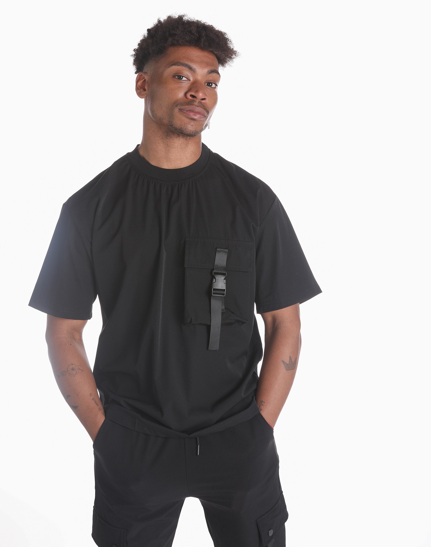 Camiseta Manga Corta Negra Detalle Bolsillo Lateral