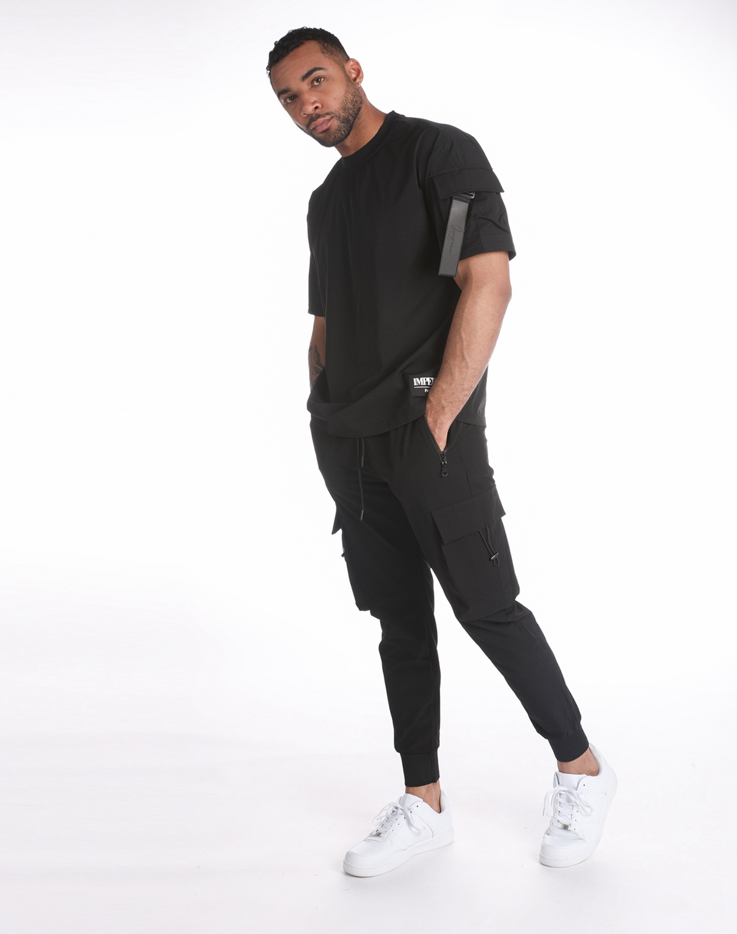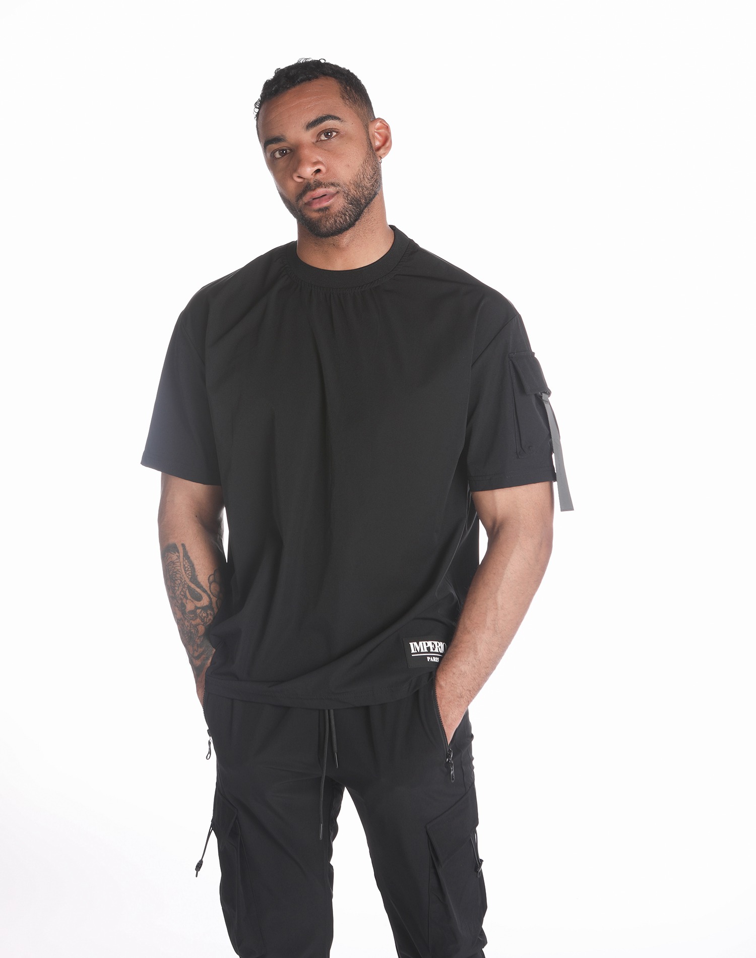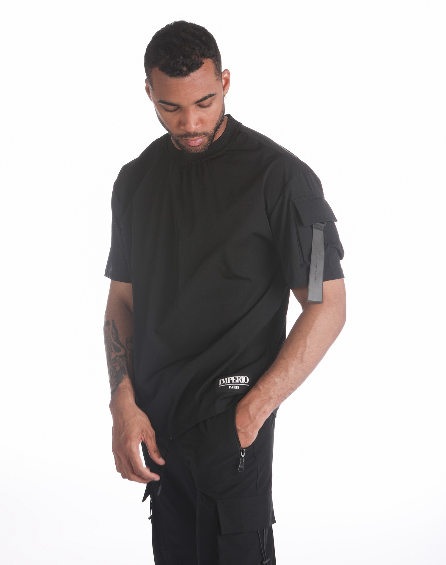 Camiseta Manga Corta Negra Detalle Bolsillo Lateral