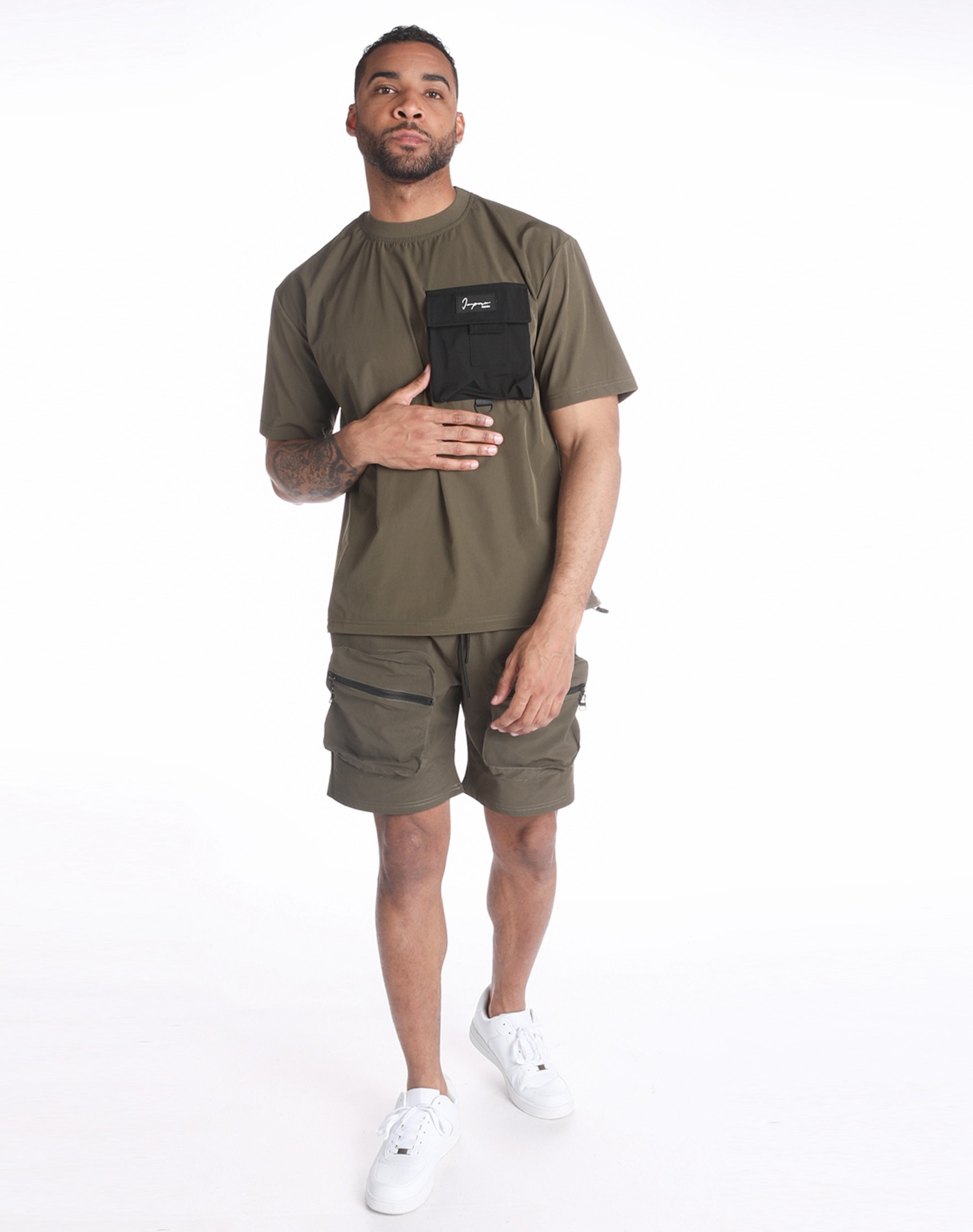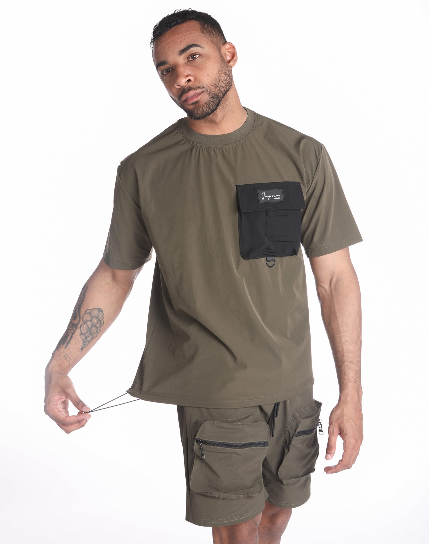 Camiseta Manga Corta Verde Detalle Bolsillo Lateral