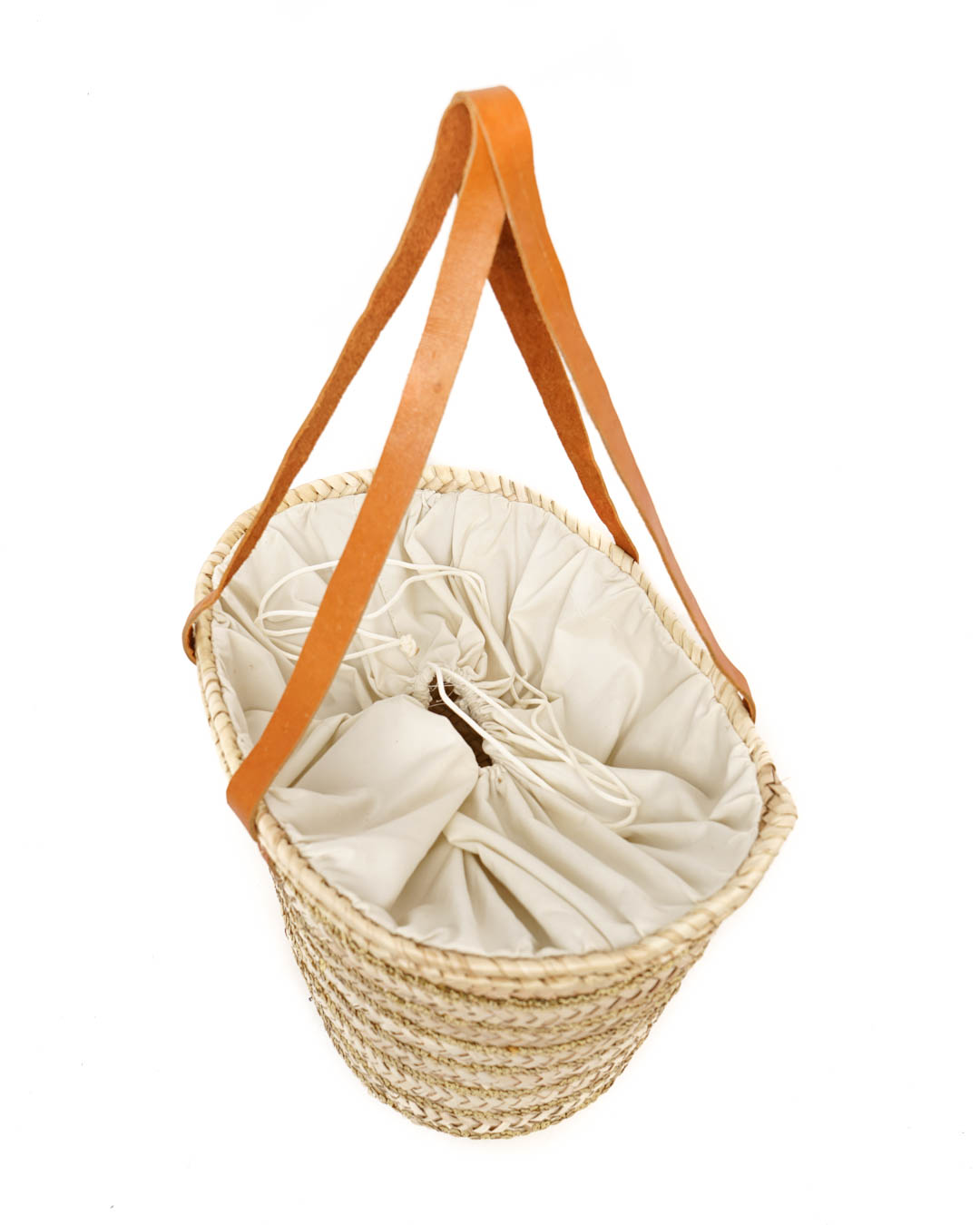 • Capazo realizado de forma artesana con materiales naturales. (Al estar realizado de forma artesana puede variar el tamaño y pequeñas imperfecciones, la piel puede variar el tono así como tener pequeñas imperfecciones)