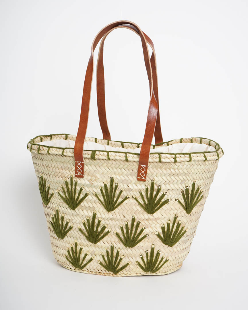Capazo Hojas de Palma Natural y Lana – Asa de Piel