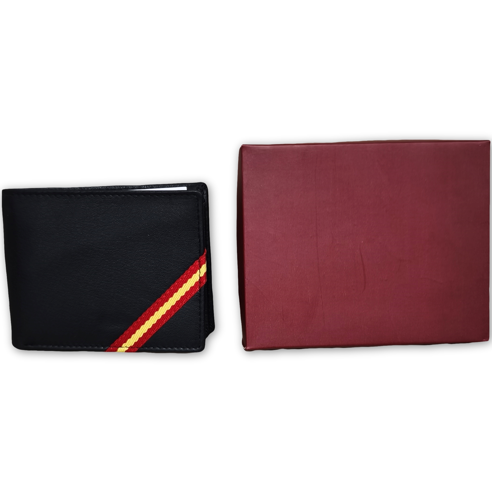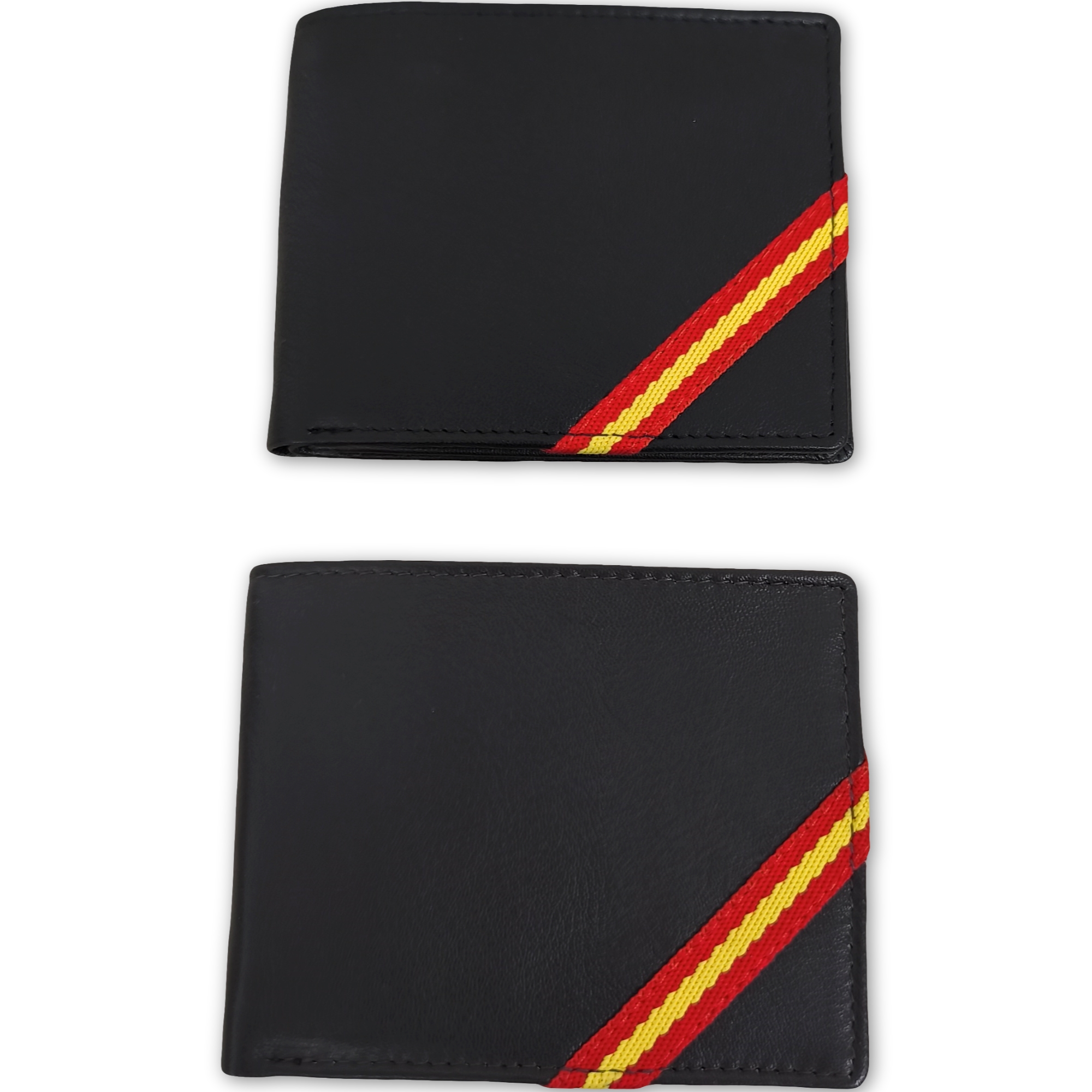 Cartera moderna y funcional fabricada en piel de alta calidad. Su diseño incluye la bandera de España en cinta diagonal, aportando estilo y carácter. Cuenta con compartimentos para tarjetas y billetes, ideal para el uso diario.