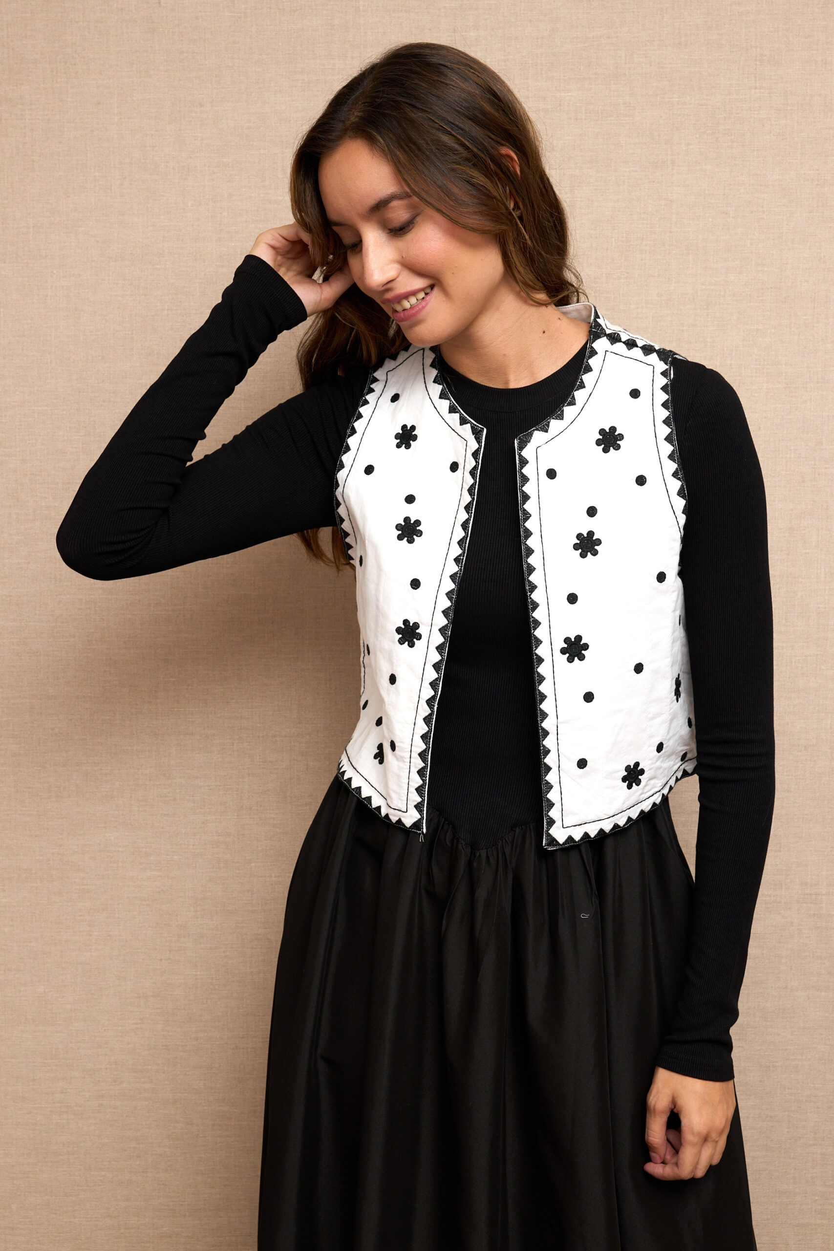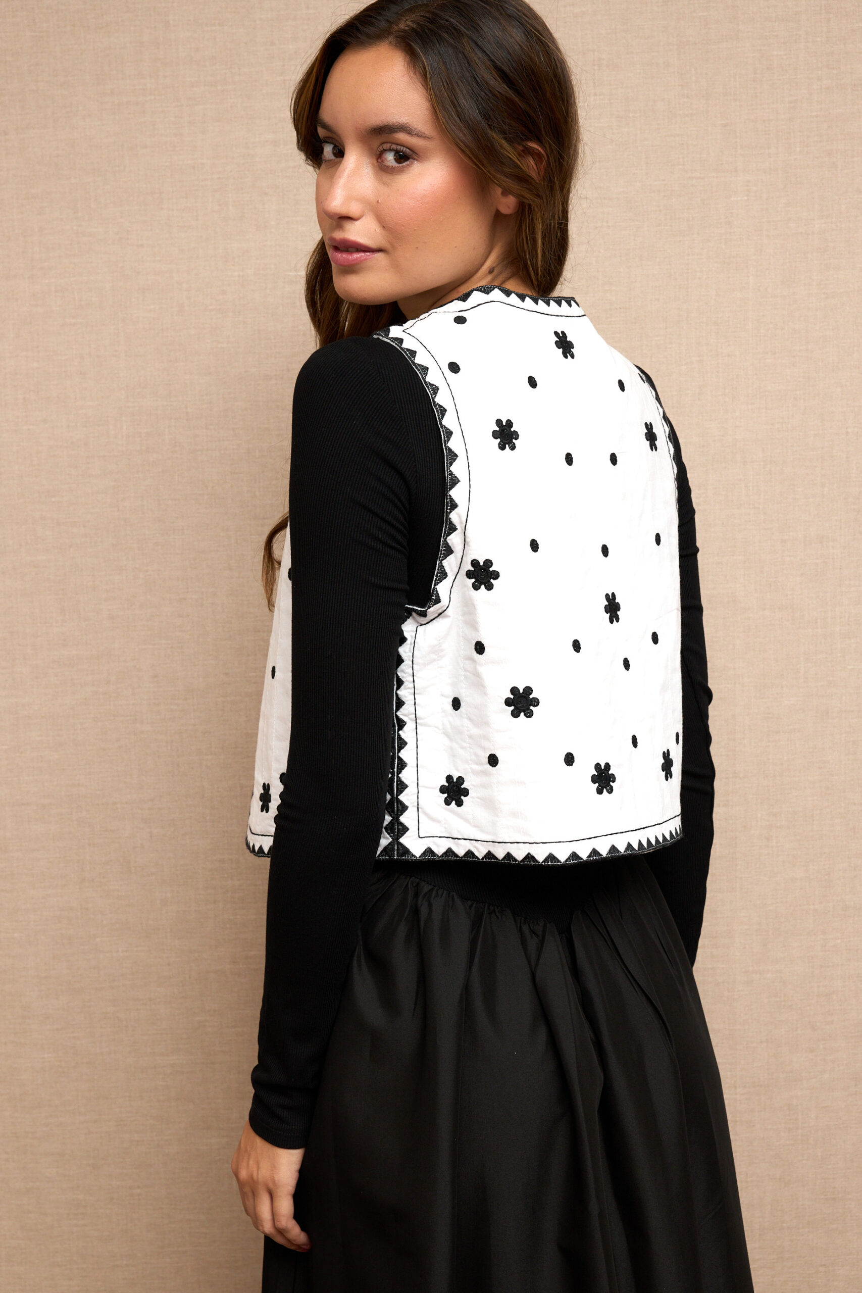 Chaleco Blanco Flores Bordadas