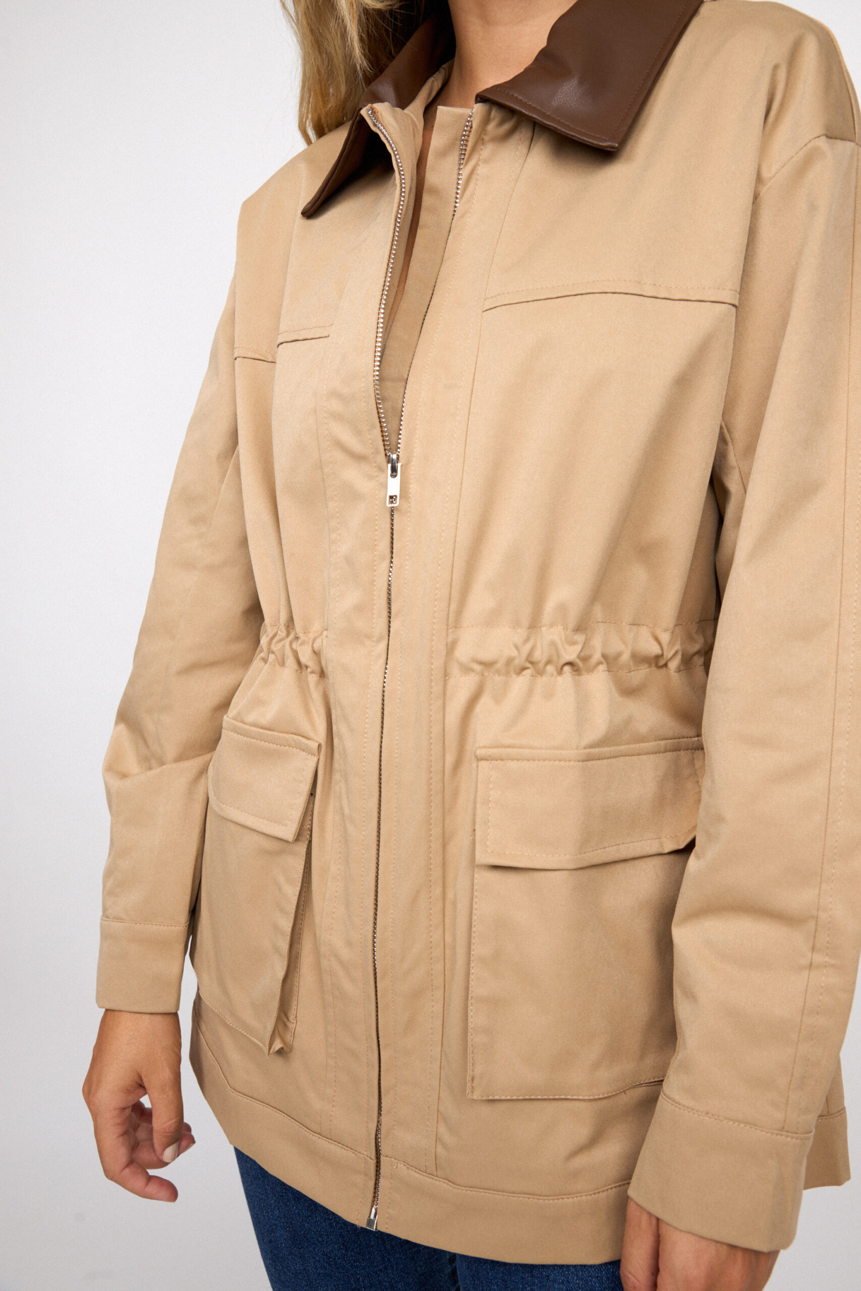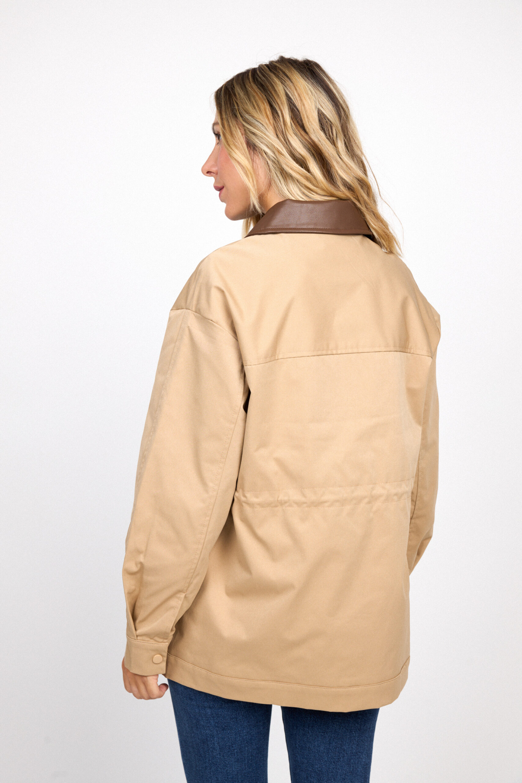 Chaqueta Beige Cuello Contraste Polipiel