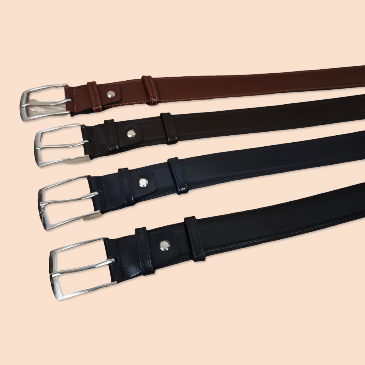Cinturones de alta calidad elaborados en auténtica piel de vacuno . Con herrajes resistentes y un acabado elegante. Gracias a su sistema de tornillo, se pueden cortar fácilmente para ajustar a la medida perfecta.
