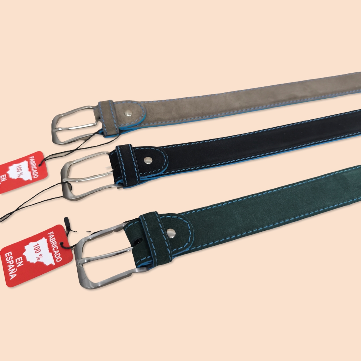 Cinturones de alta calidad elaborados en auténtica piel de vacuno Serraje. Con herrajes resistentes y un acabado elegante. Gracias a su sistema de tornillo, se pueden cortar fácilmente para ajustar a la medida perfecta.
