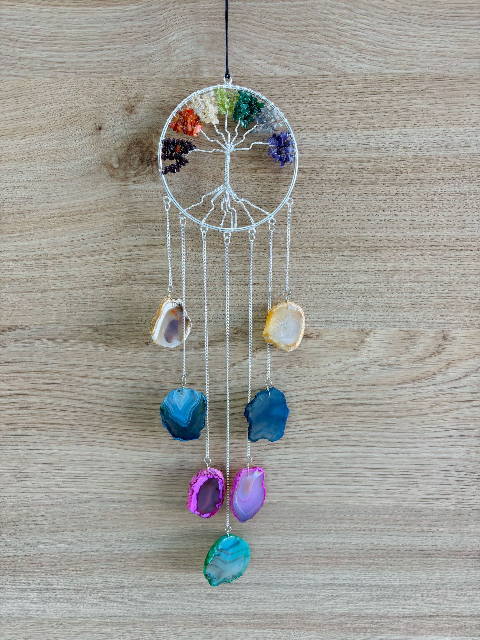 Colgador Plateado Circulo Piedras Multicolor Árbol de la Vida