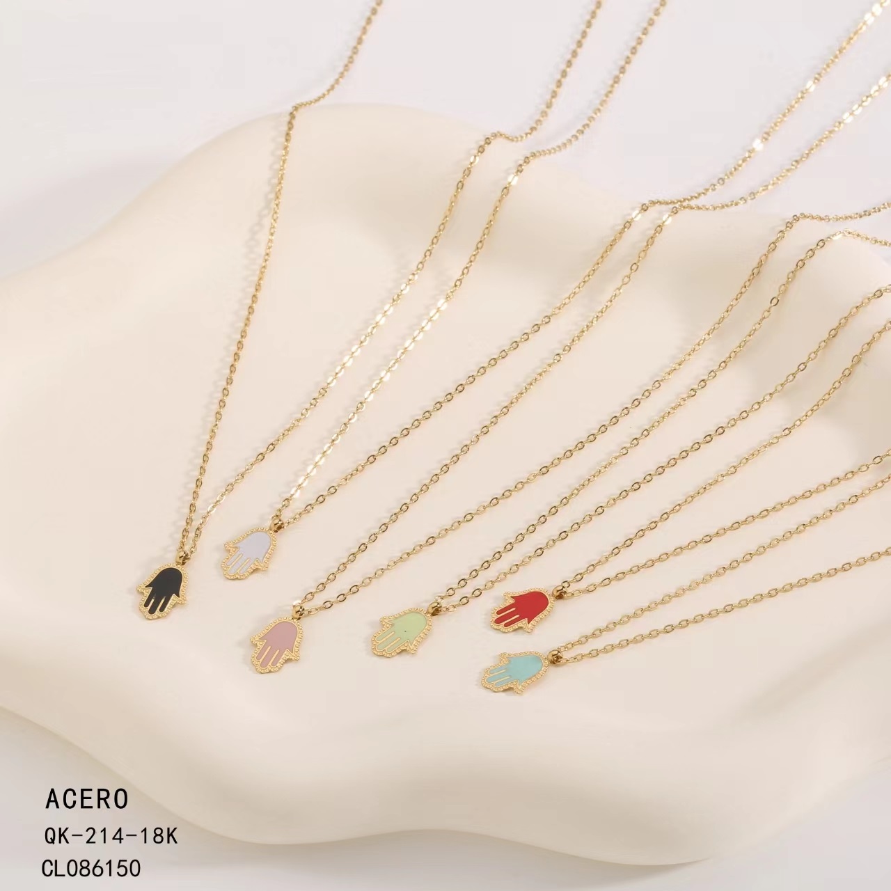 Collar Acero Colgante Multicolor Mano de Fátima