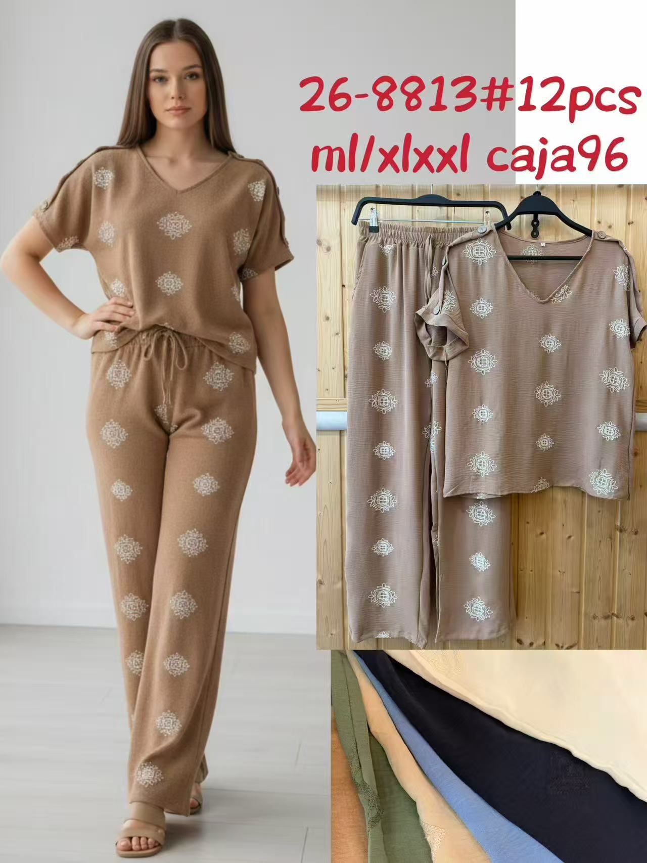 Conjunto Blusa Manga Corta y Pantalón Estampado