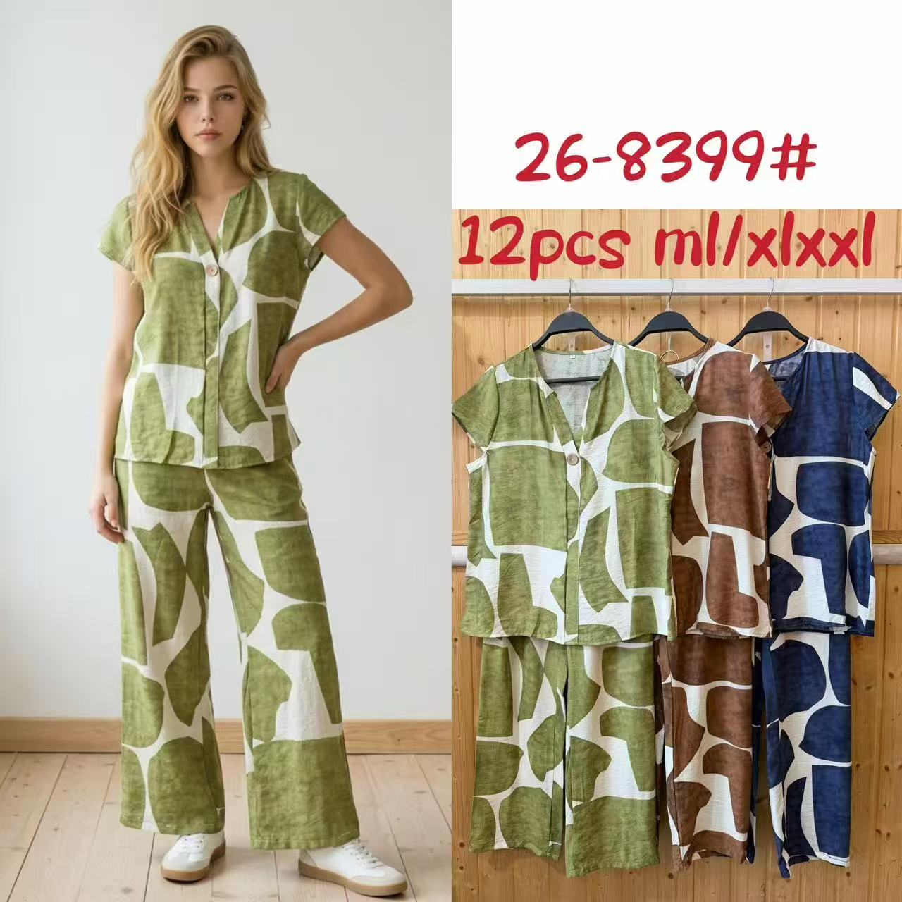 Conjunto Blusa Manga Corta y Pantalón Largo Estampado