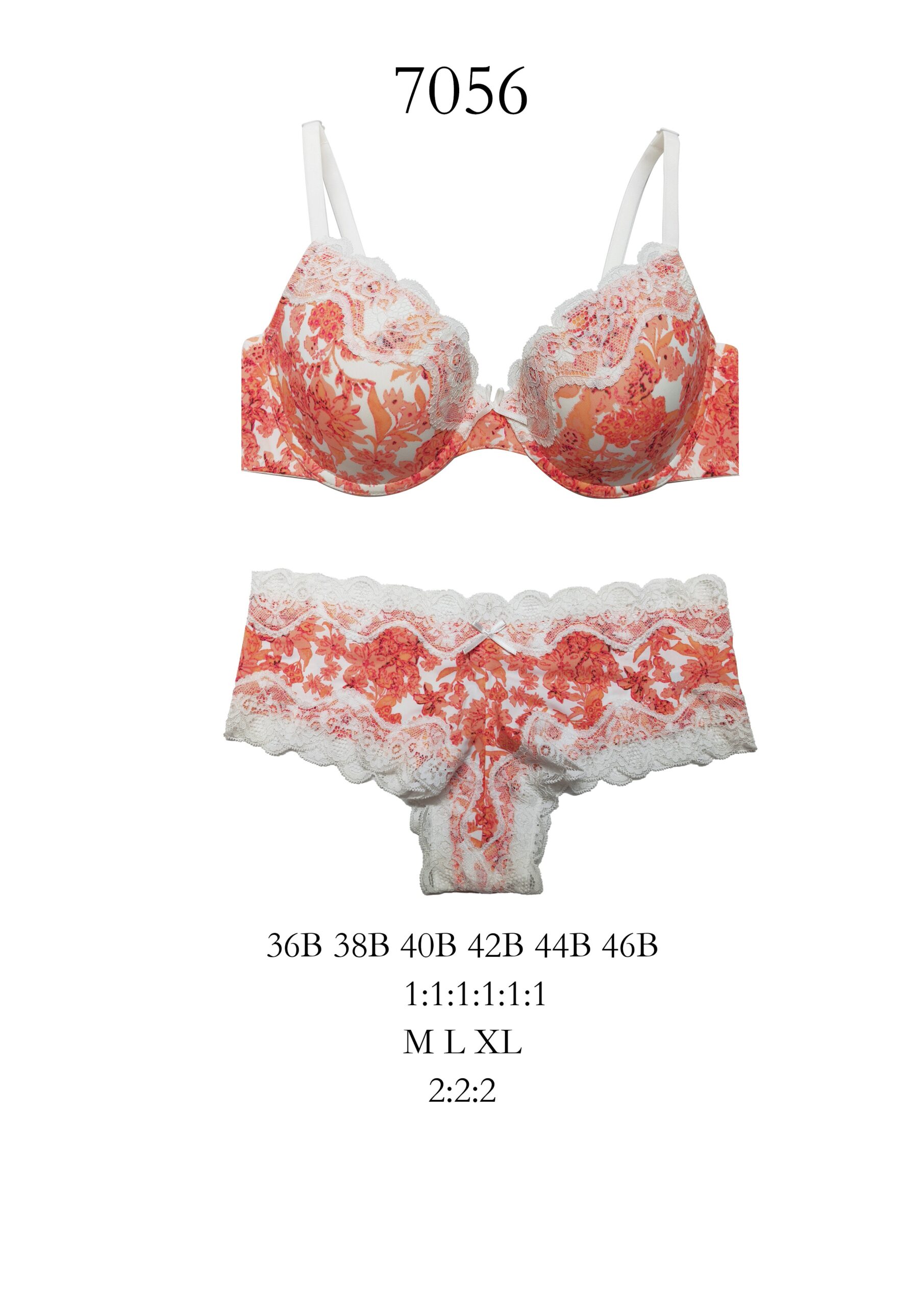 Conjunto Naranja Estampado con Encaje Sujetador Copa B y Braga