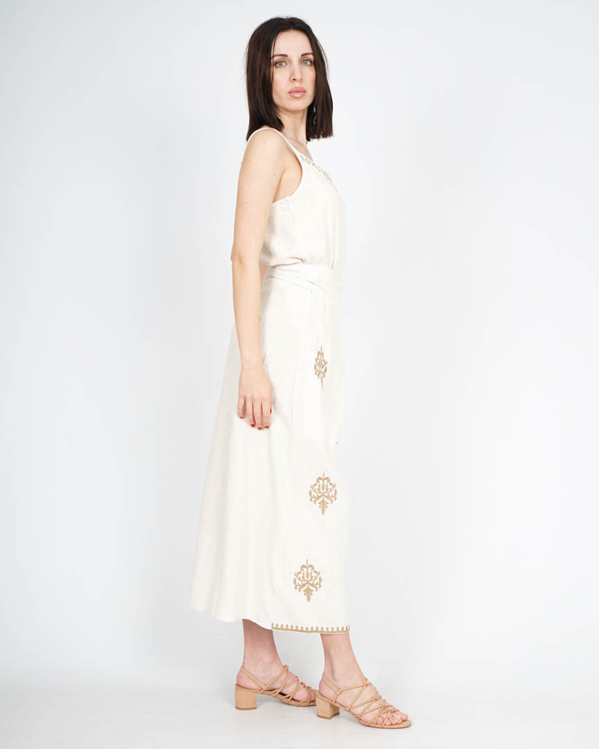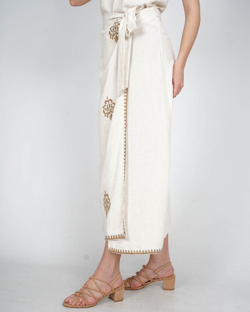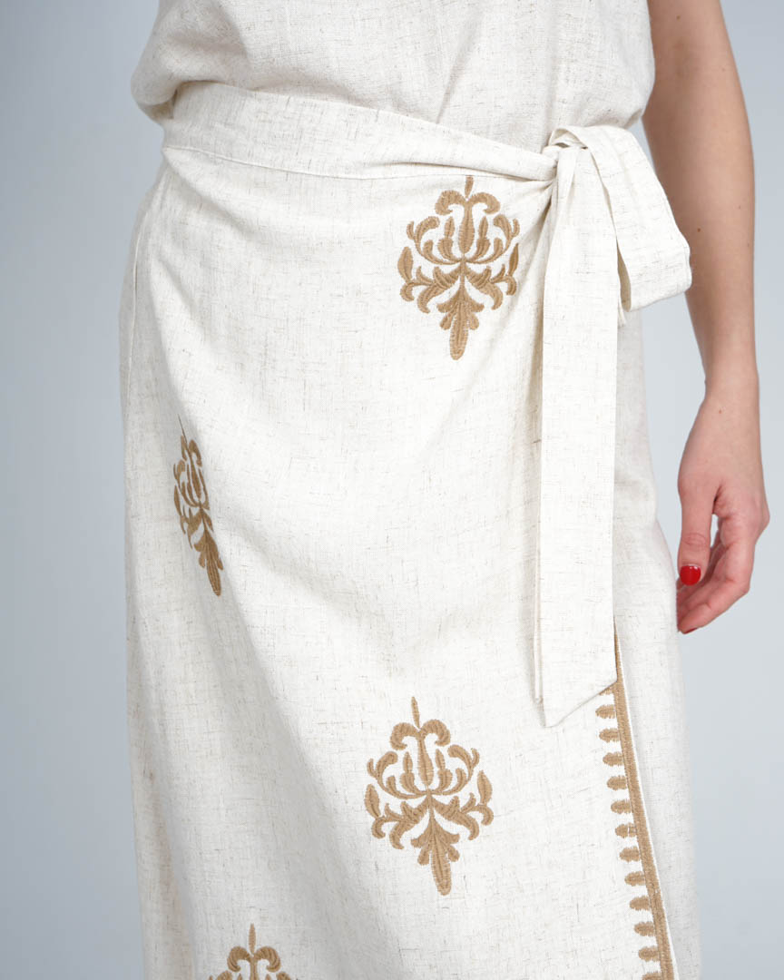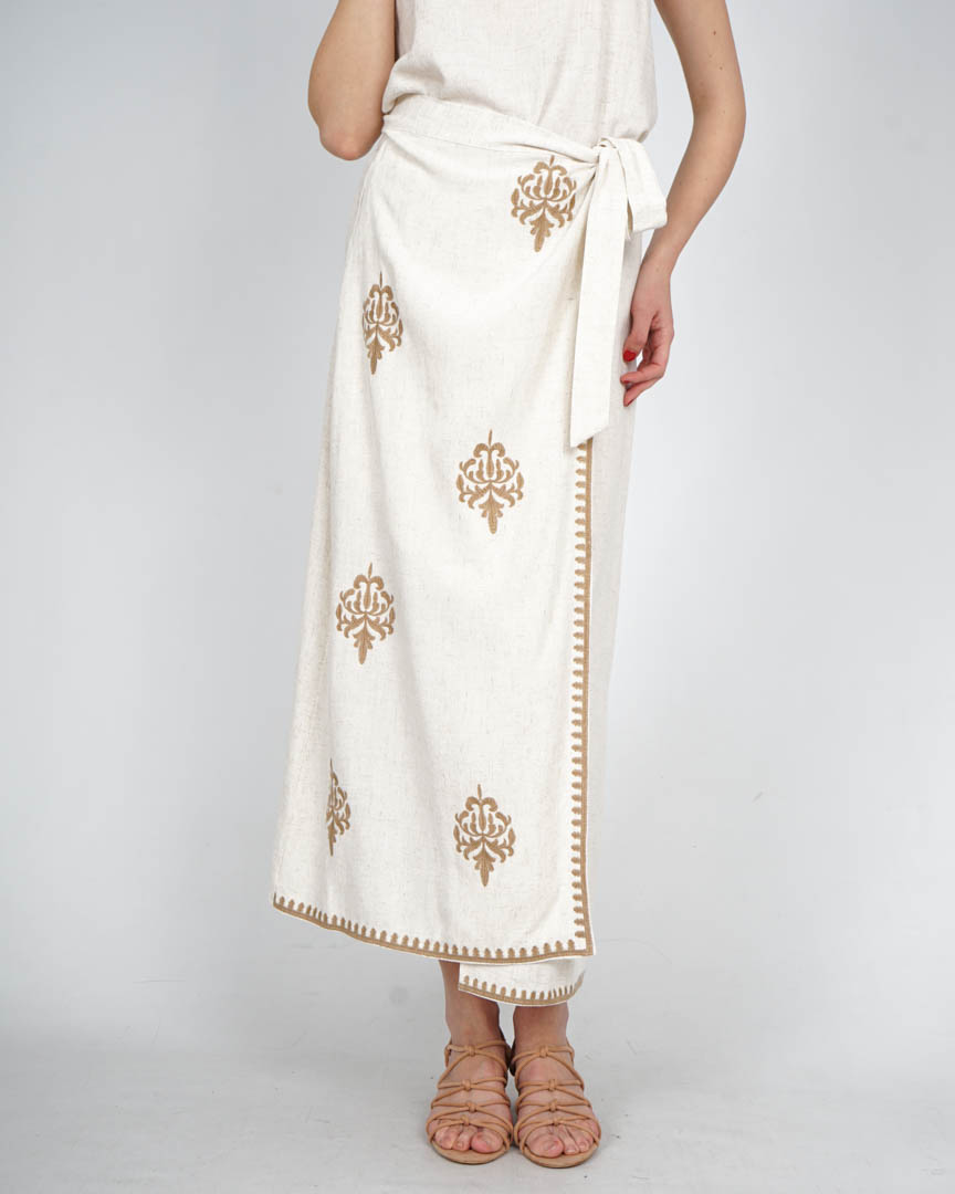 Falda Blanca Larga Pareo con Bordados