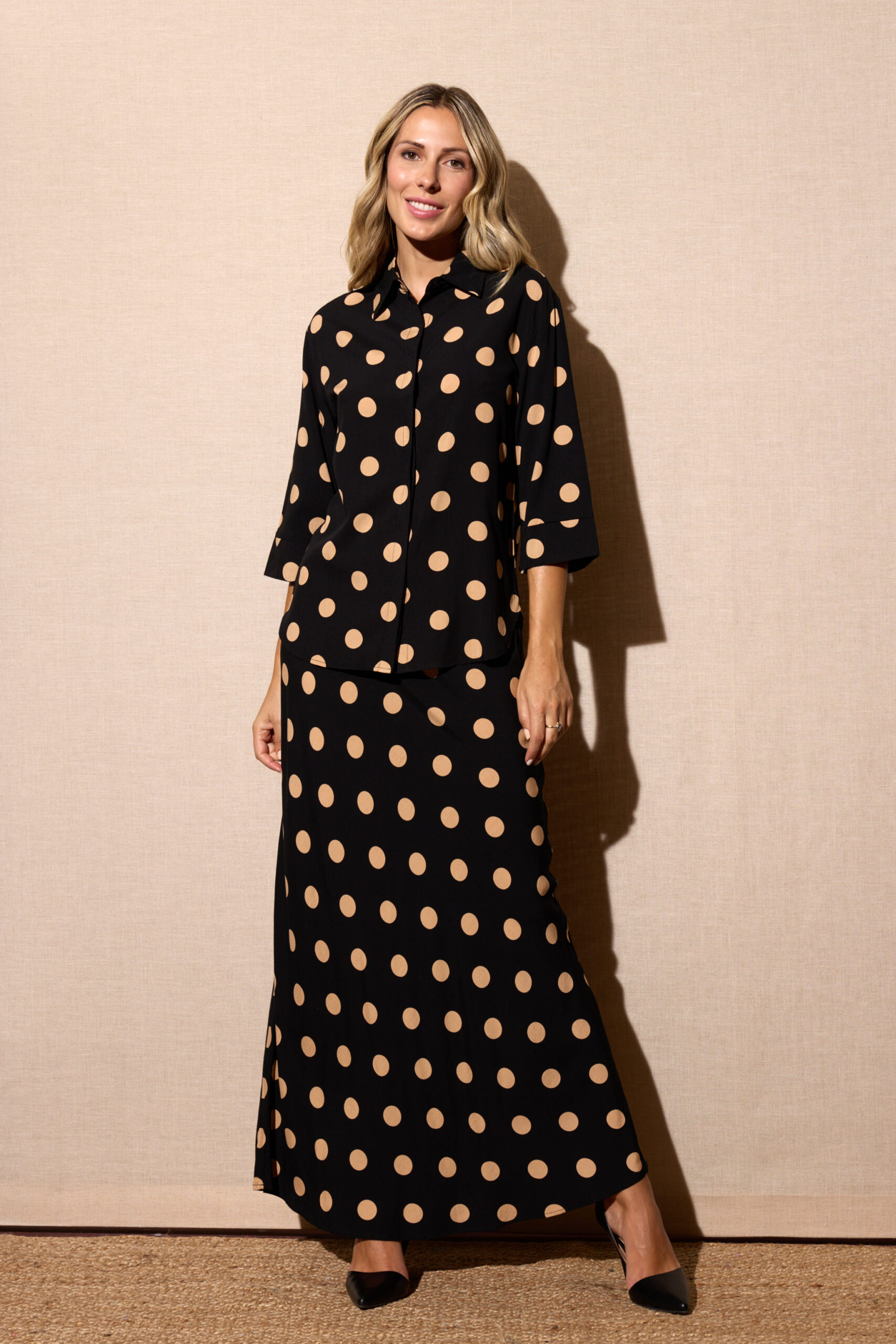 • Camisa a juego:https://www.baloby.com/producto/camisa-negra-estampado-lunares-grandes-beige/