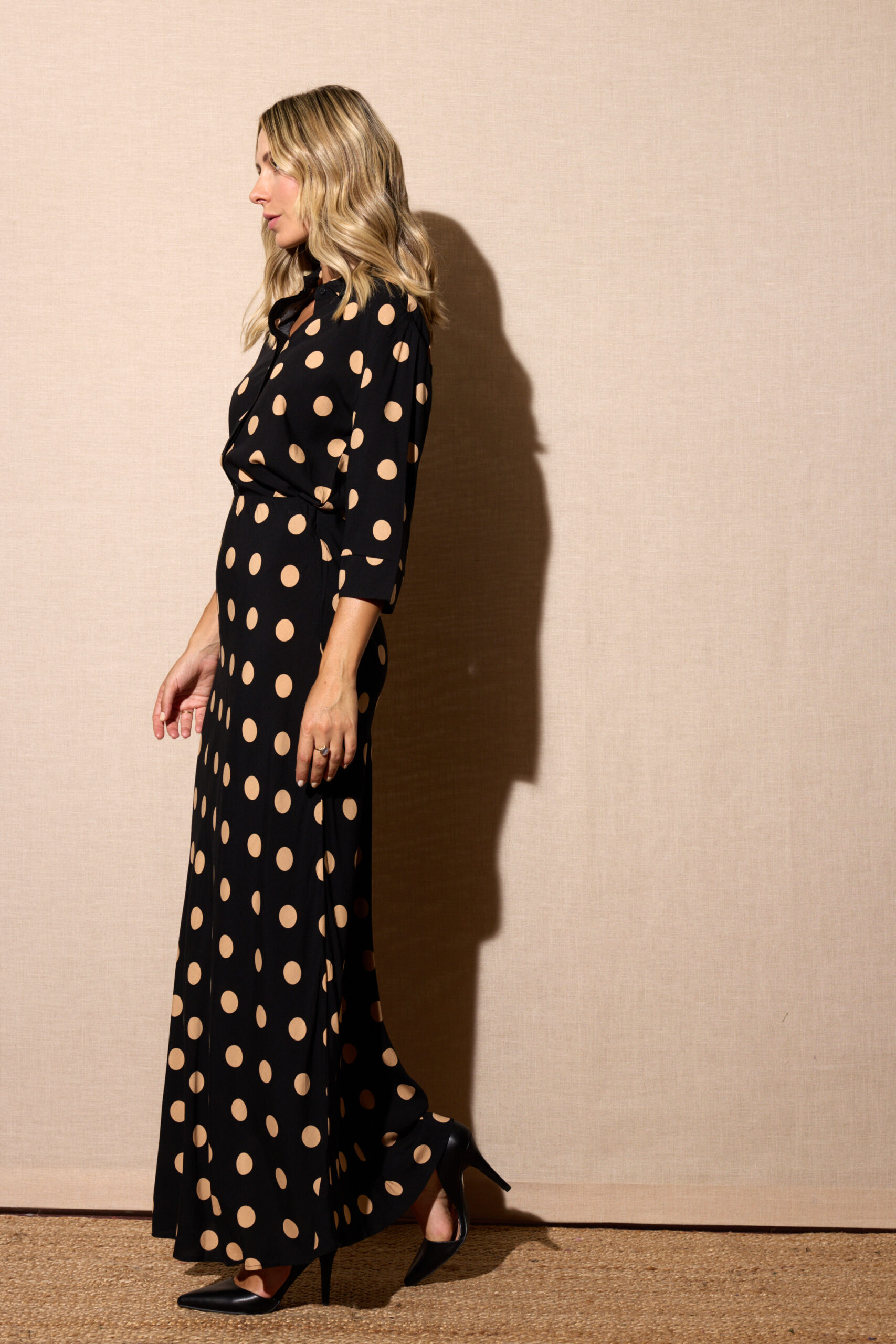 Falda Larga Negra Estampado Lunares Grandes Beige - Imagen 3