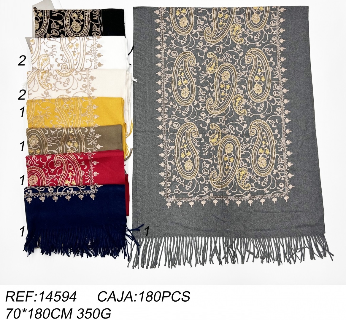 Fular Flecos Bordado Paisley Dorado
