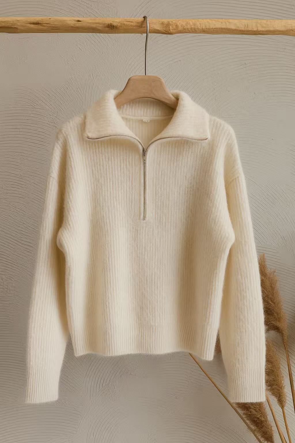 InicioRopa al Por Mayor de MujerSudaderas Y Jerseys Jersey Beige Cuello con Cremallera