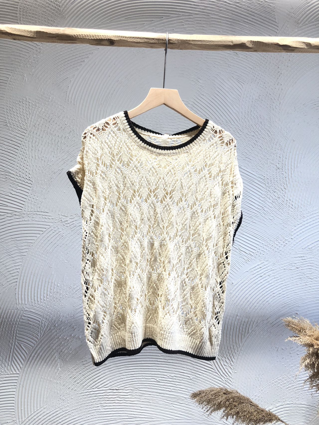 Jersey Calado Manga corta Beige - Imagen 1