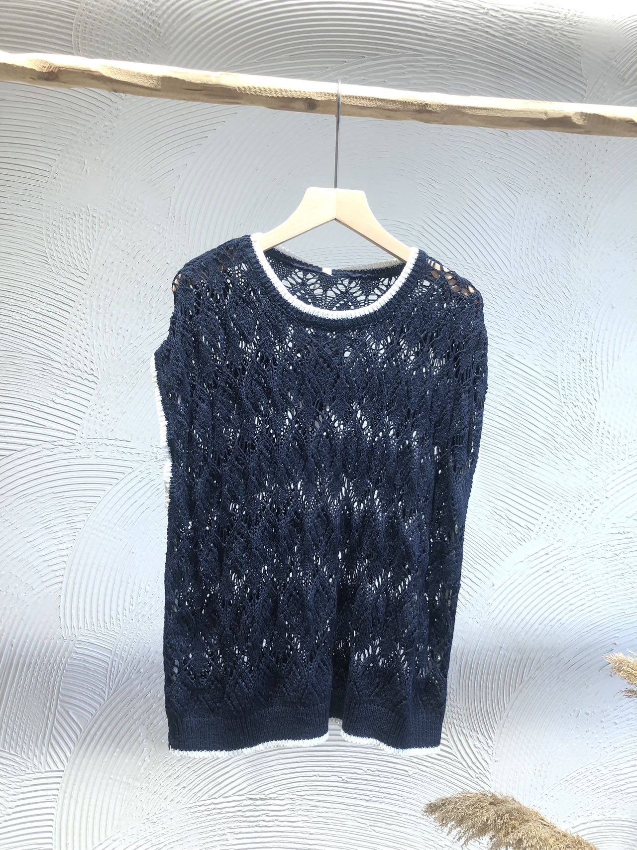 InicioRopa al Por Mayor de MujerCamisa y Blusa de Mujer Jersey Calado Manga corta Negro