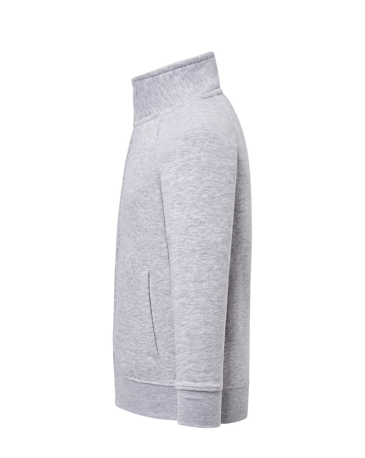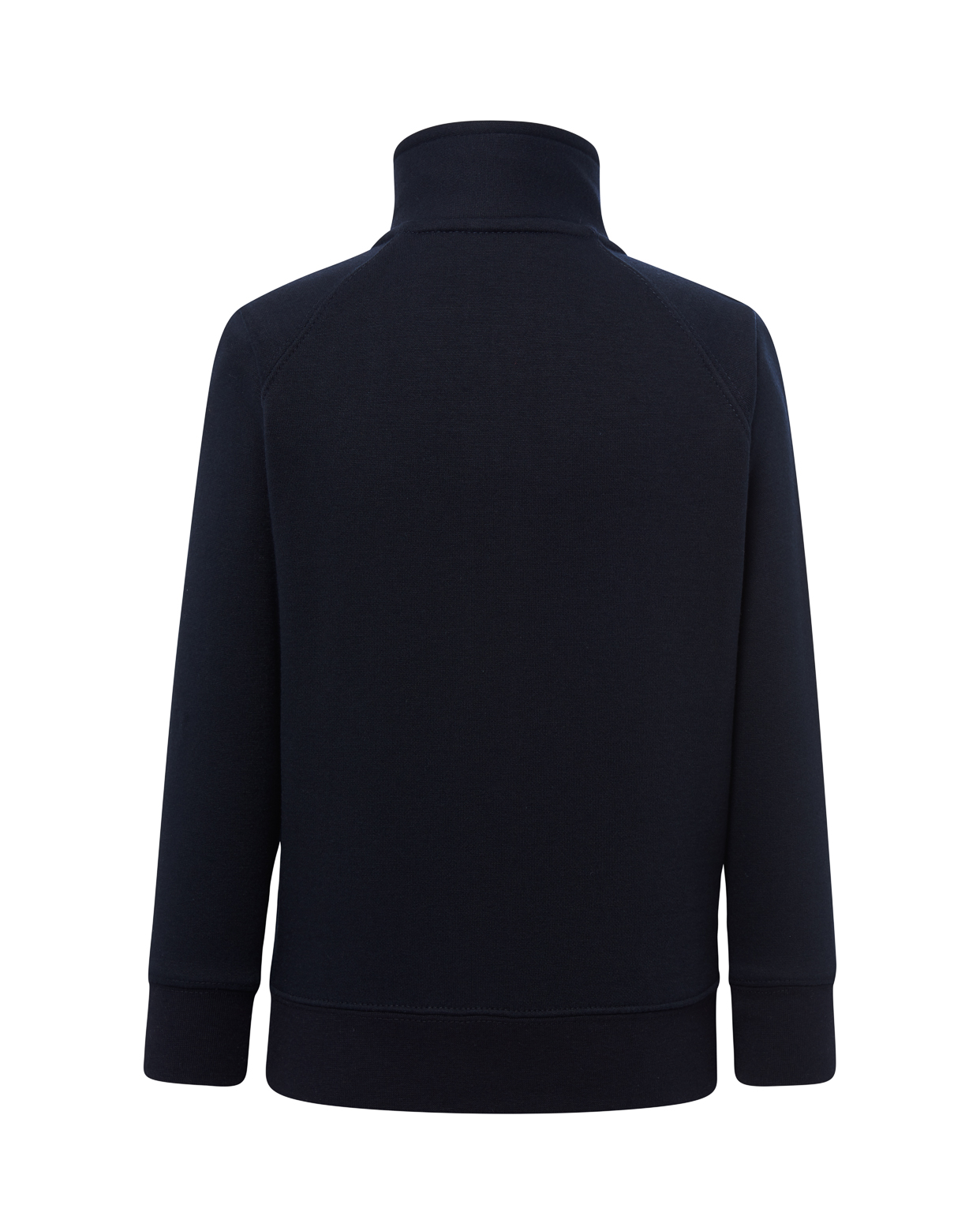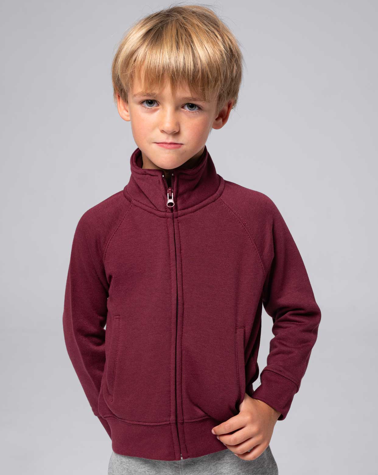 👕 Sudadera infantil unisex con cremallera completa y cuello alto sin capucha, diseñada con bolsillos laterales y cremallera invisible cubierta. Disponible desde talla 1/2 años hasta 12/14 en 8 colores versátiles. Confeccionada en felpa perchada de 290 gr/m² con 40% poliéster reciclado, ofrece calidez y durabilidad excepcionales.