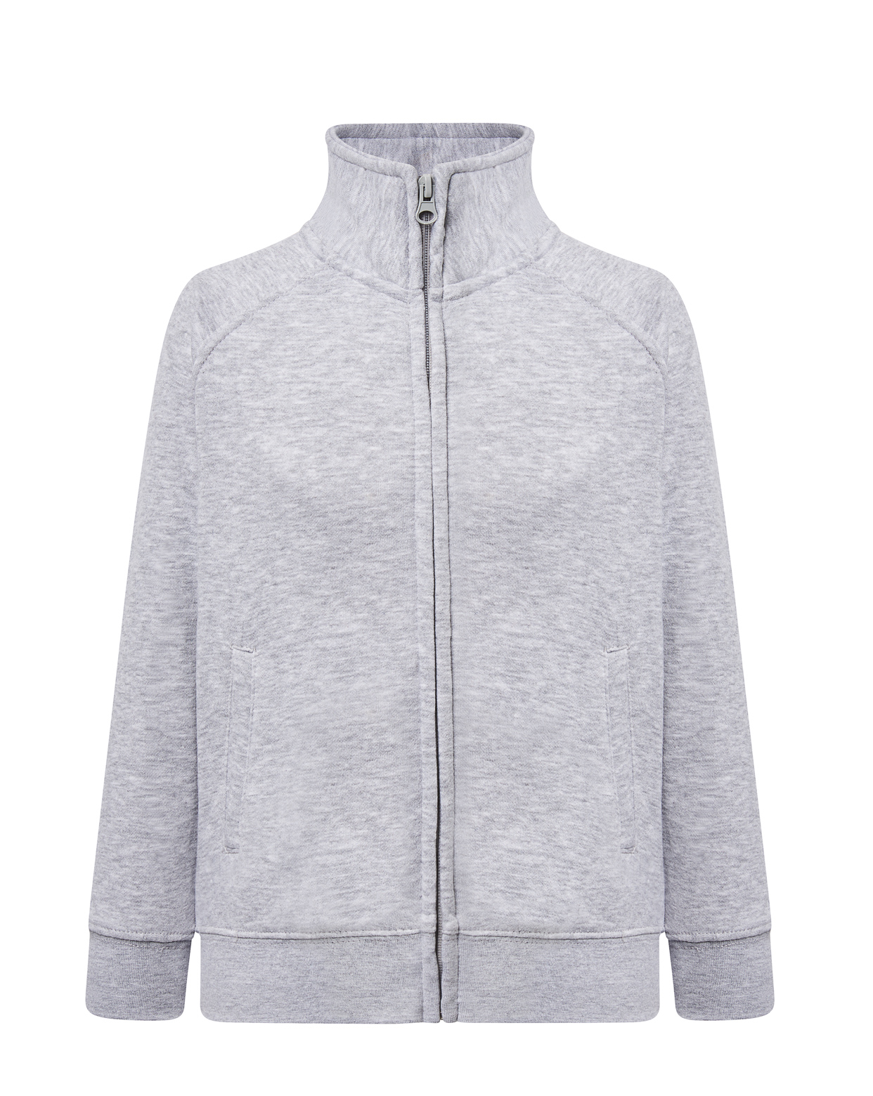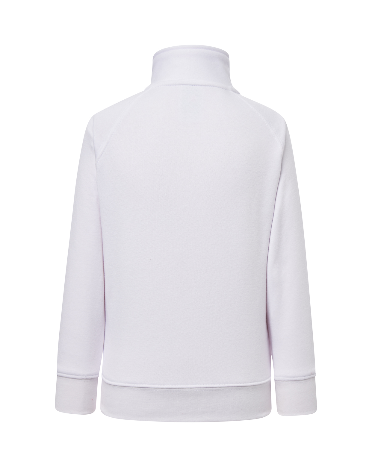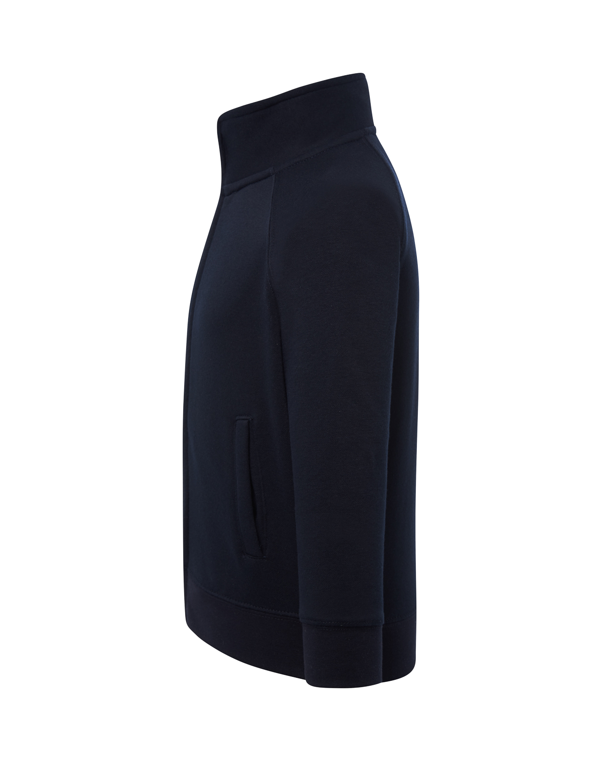 👕 Sudadera infantil unisex con cremallera completa y cuello alto sin capucha, diseñada con bolsillos laterales y cremallera invisible cubierta. Disponible desde talla 1/2 años hasta 12/14 en 8 colores versátiles. Confeccionada en felpa perchada de 290 gr/m² con 40% poliéster reciclado, ofrece calidez y durabilidad excepcionales.