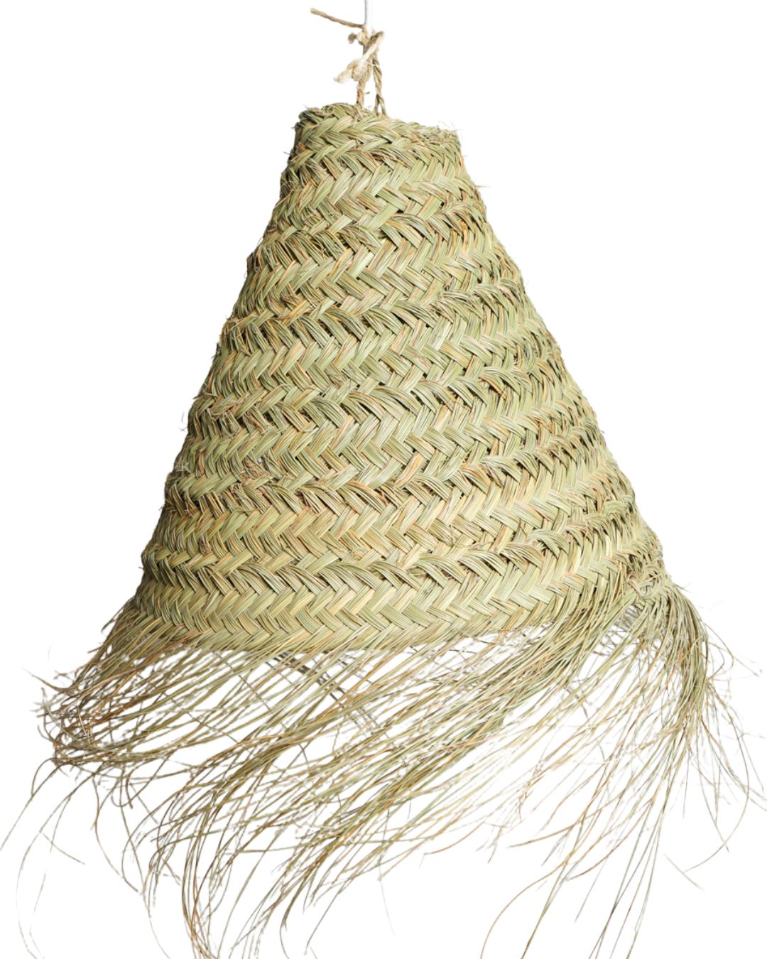 • Fabricación artesanal con hojas de palma natural trenzada. Forma cónica.