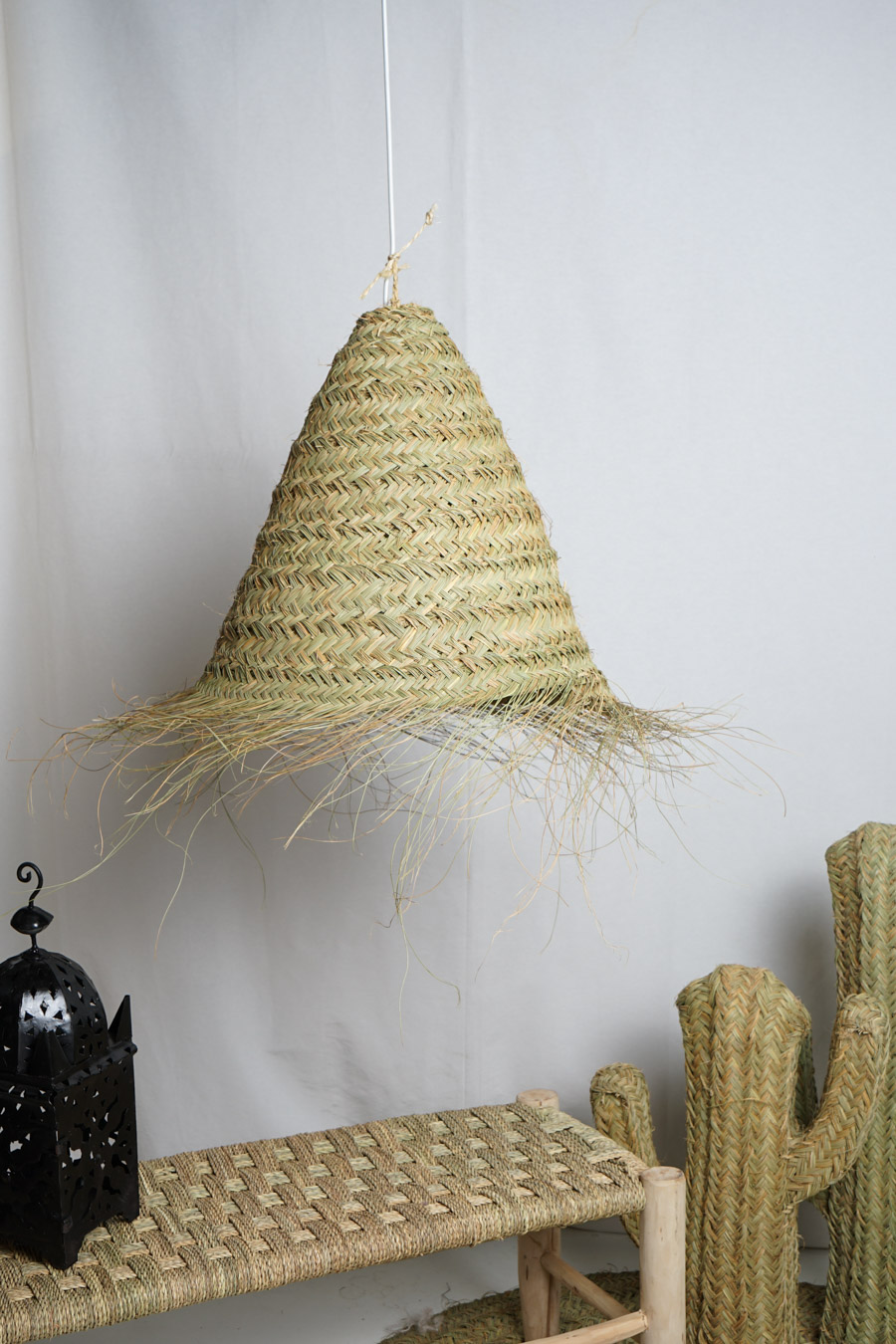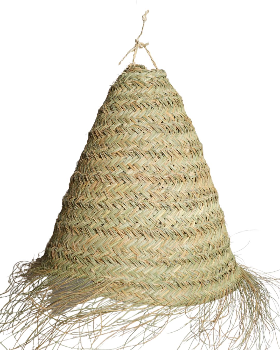 • Fabricación artesanal con hojas de palma natural trenzada. Forma cónica.