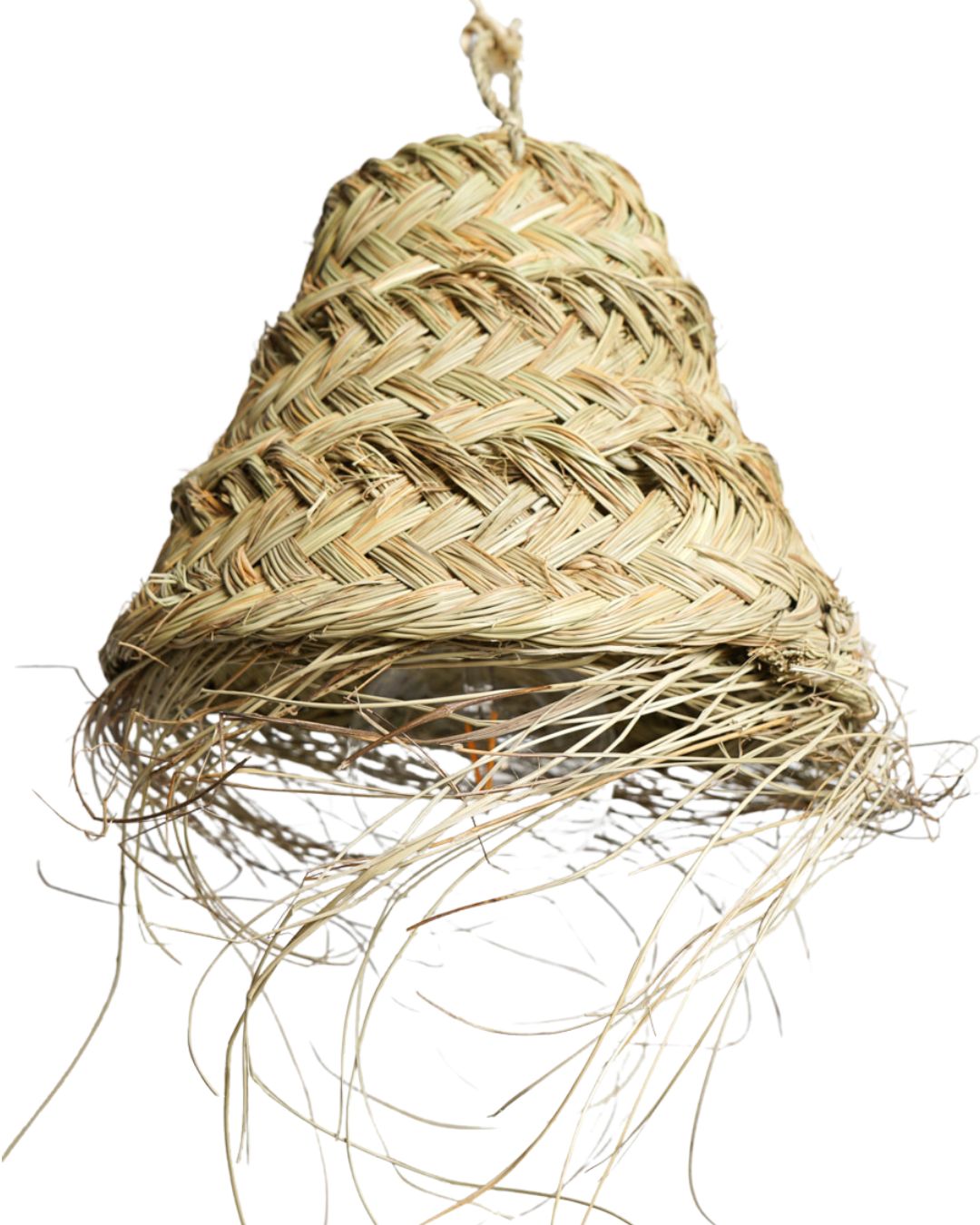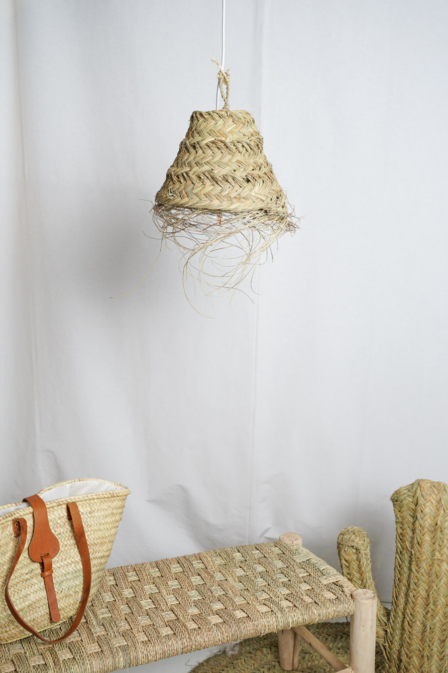 • Fabricación artesanal con hojas de palma natural trenzada. Forma cónica.