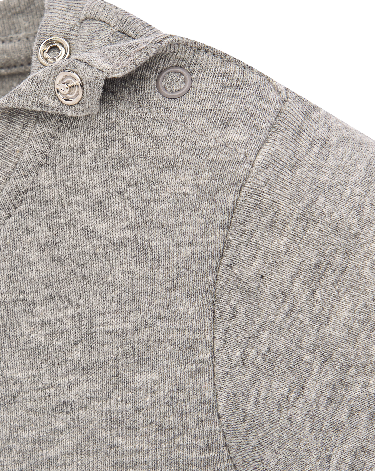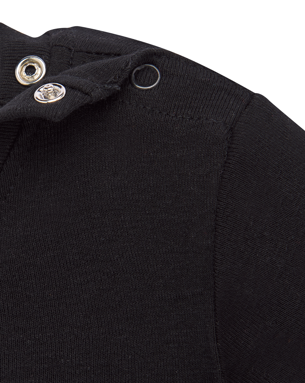 ✅ Características destacadas: corchetes de metal en hombro y bajo para facilitar el cambio de pañal, cuello redondo con canalé 1×1 que garantiza durabilidad en el uso, y etiqueta removible para mayor comodidad.