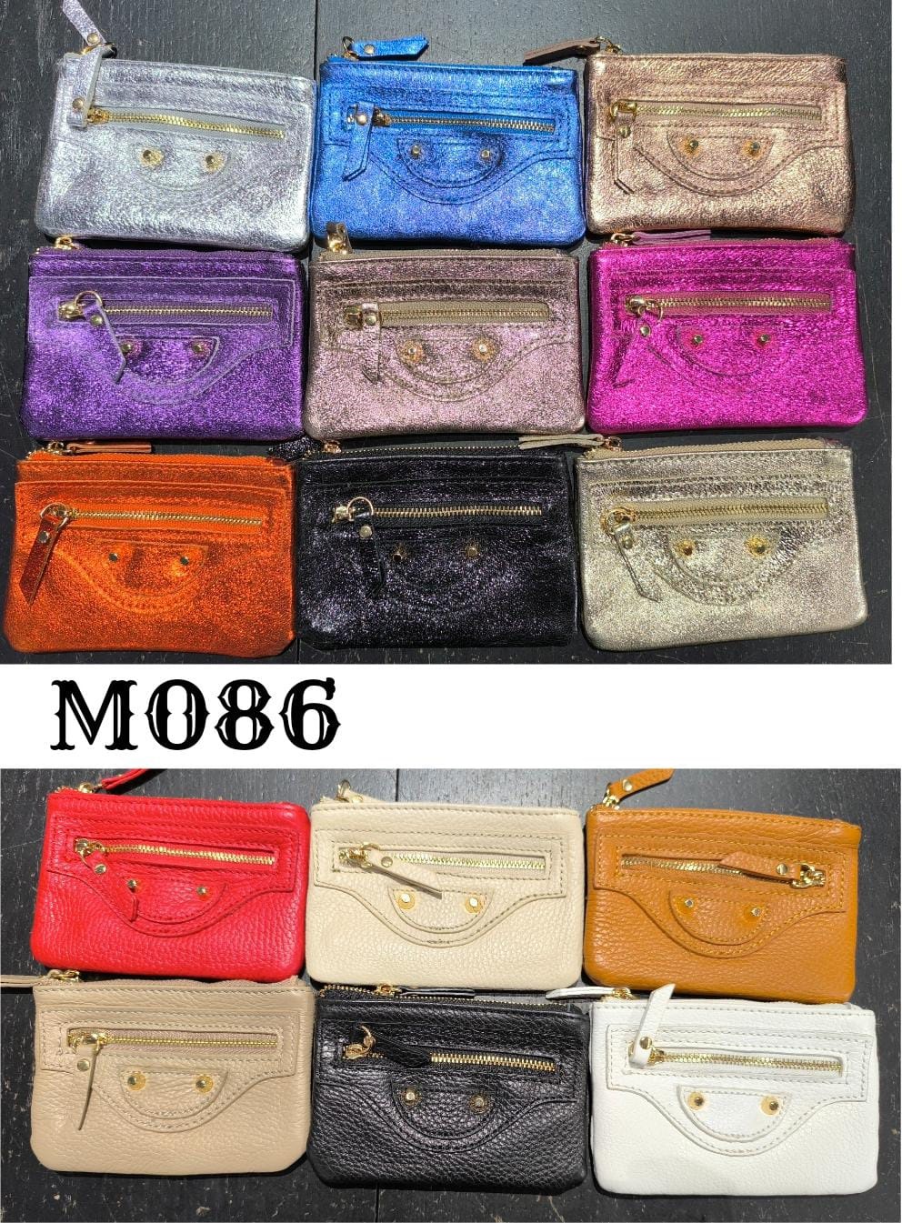 • Monedero en piel, con dos cierres en cremallera