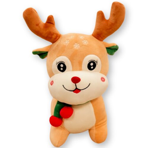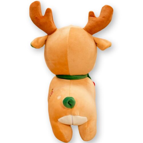 Incluye figuras variadas: bolas con diferentes texturas, estrellas, árboles, casitas y un reno central.