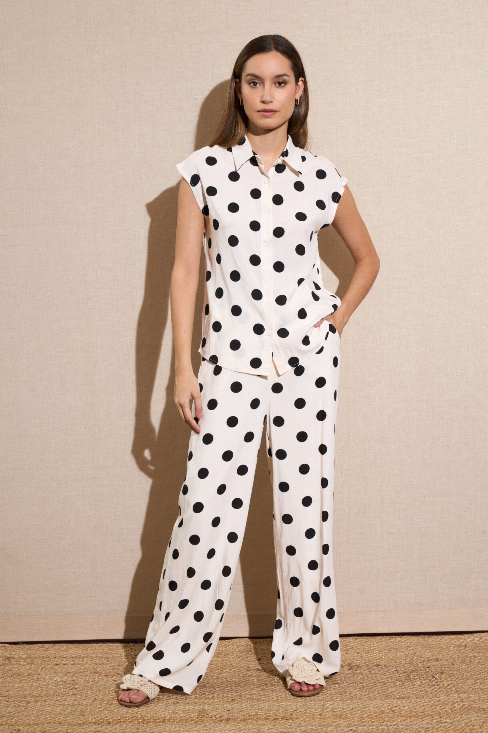Pantalón Beige Lunares Negros Grandes