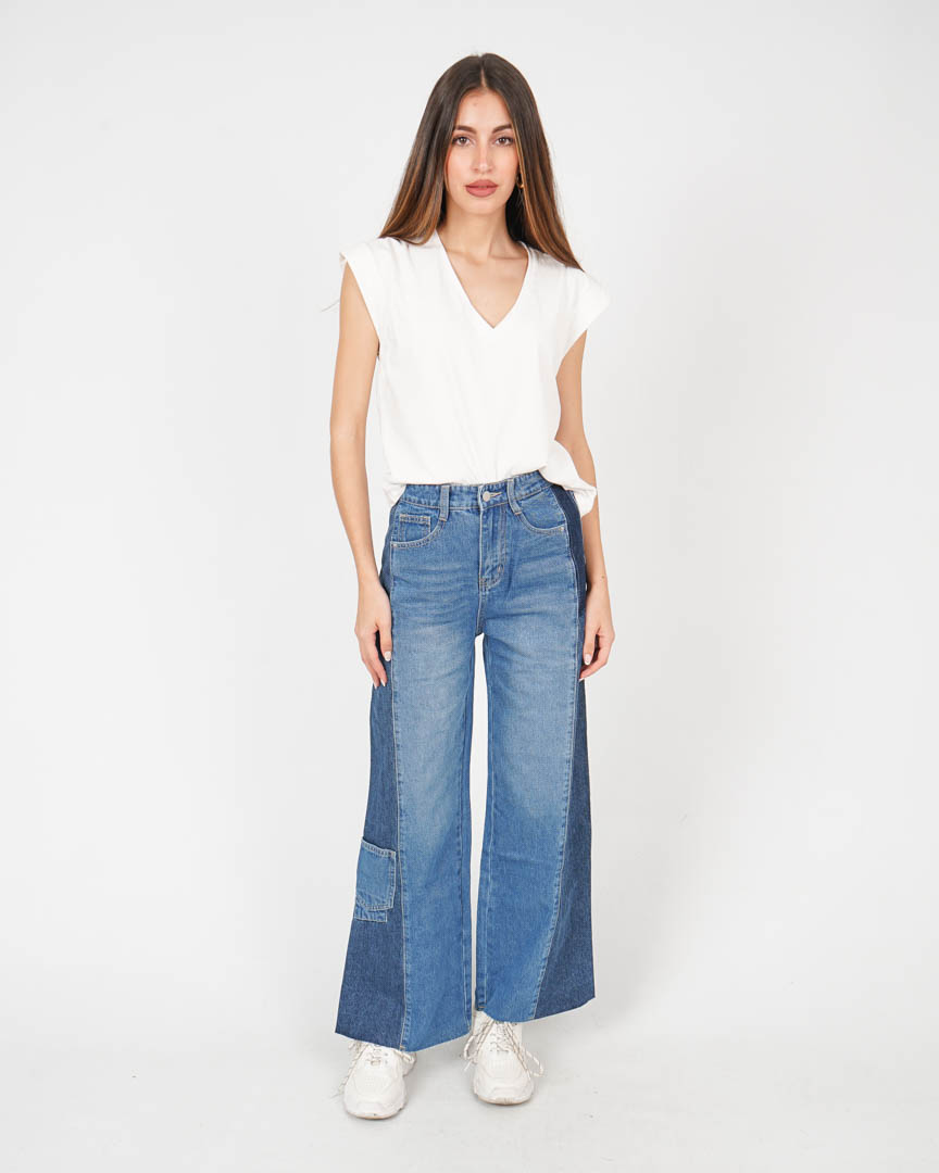 Pantalón Vaquero Ancho Dos Colores
