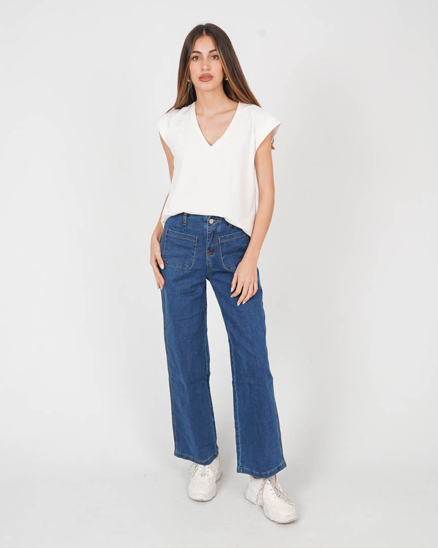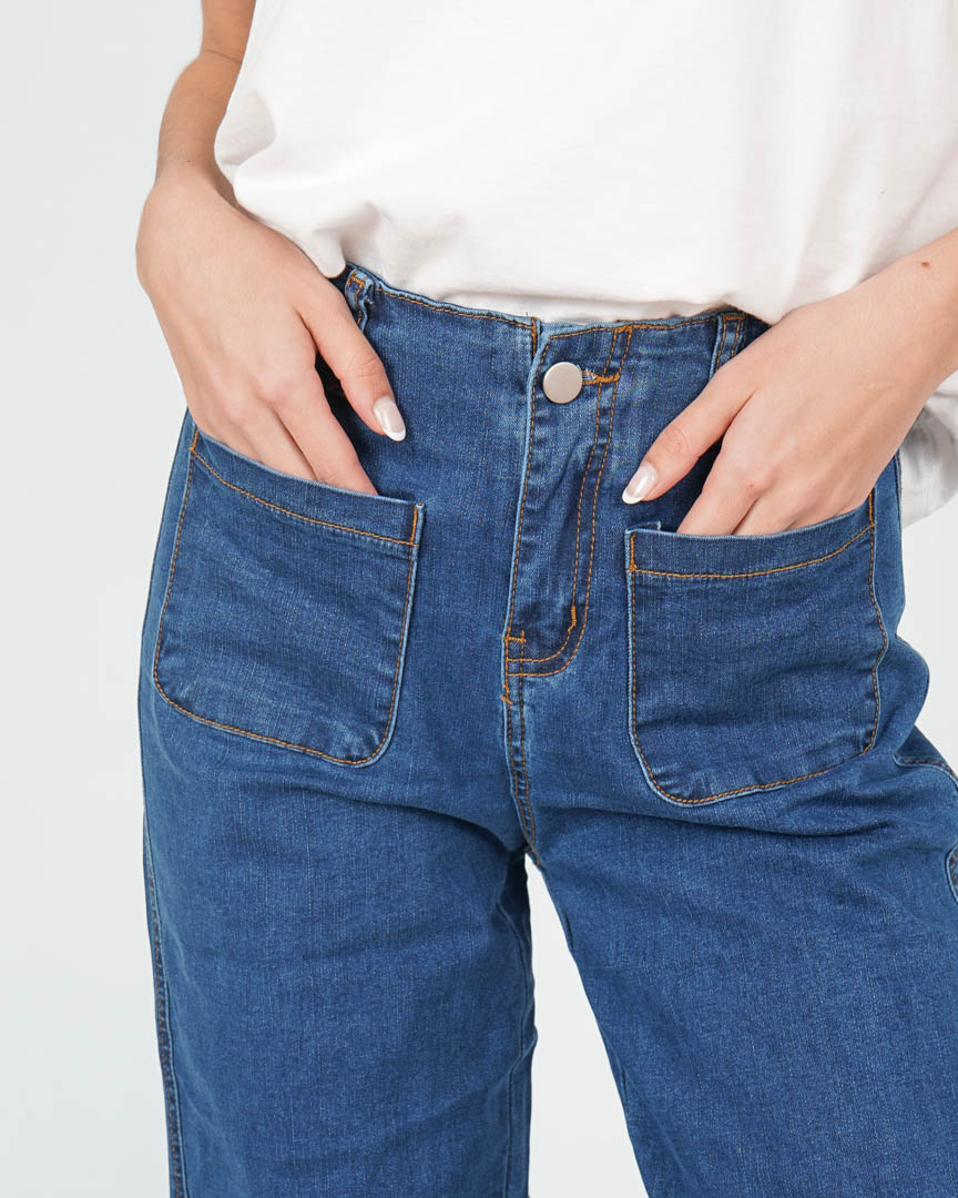 Pantalón Vaquero Oscuro Bolsillos Delanteros