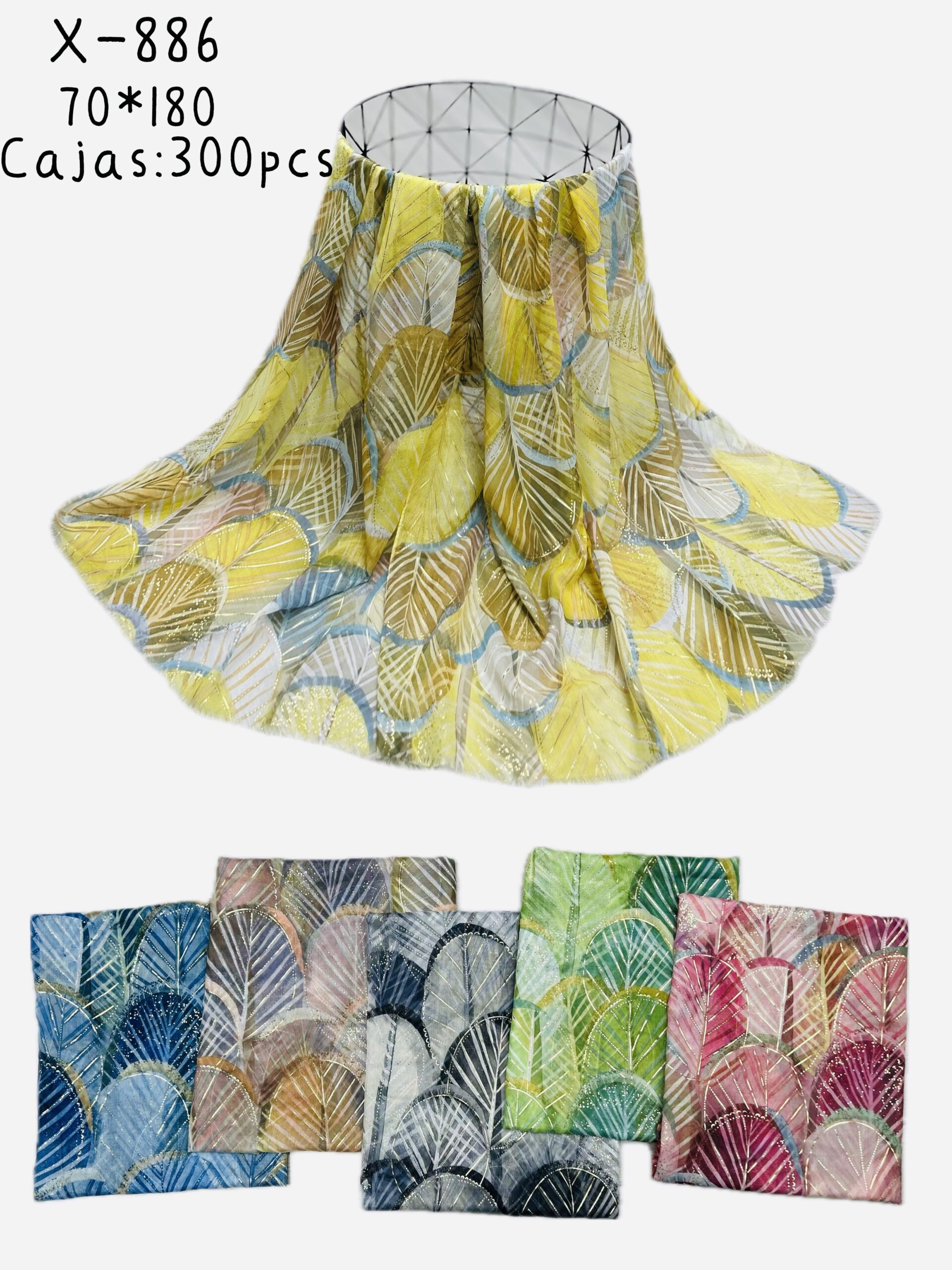Pañuelo Estampado Hojas Detalles Dorados