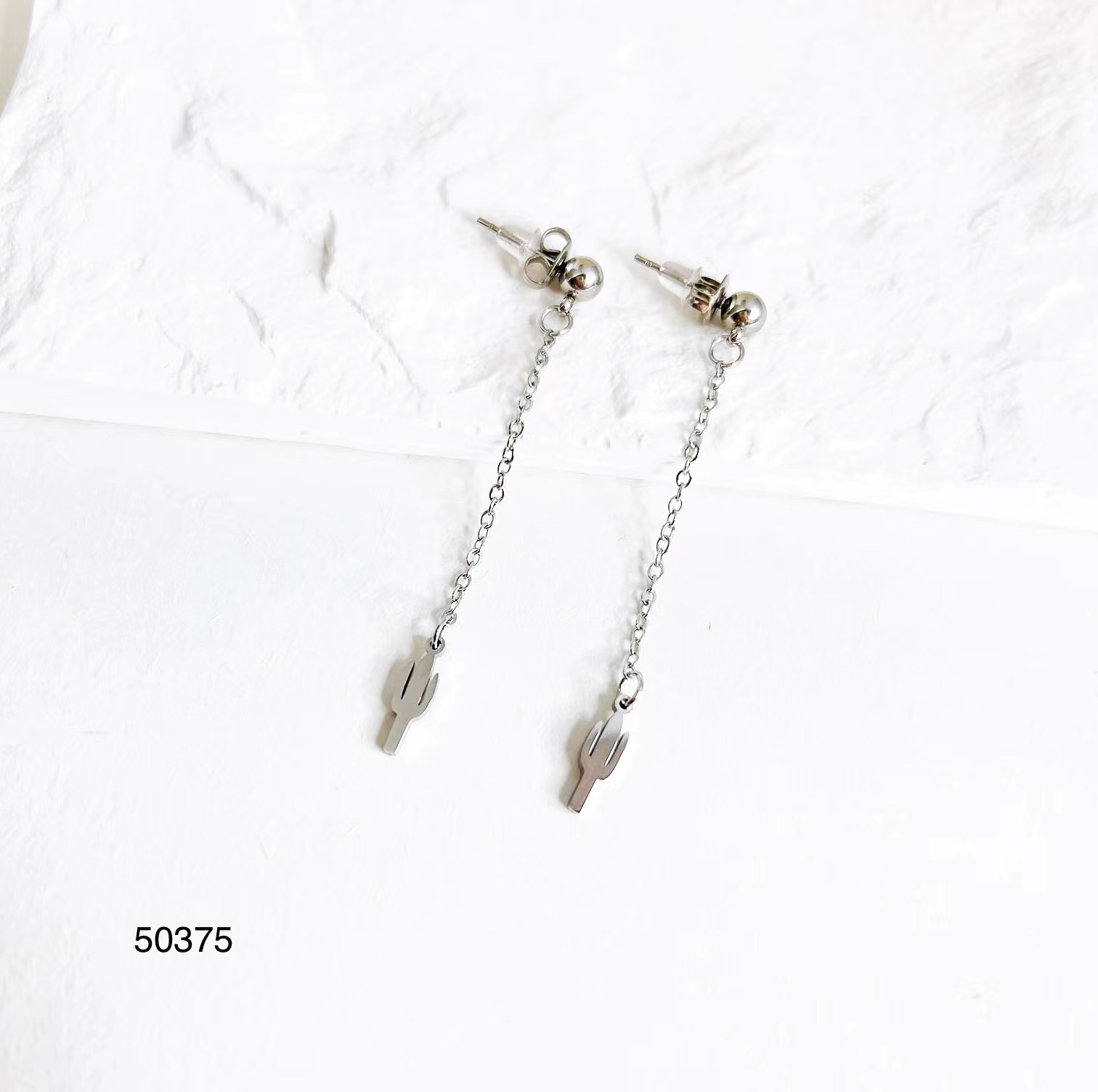 Pendientes Largos Acero Cactus Plateado