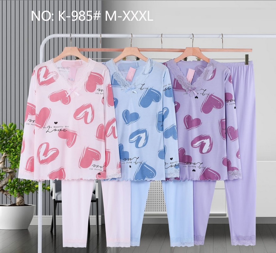 Pijama Estampado Corazones Pantalón Liso