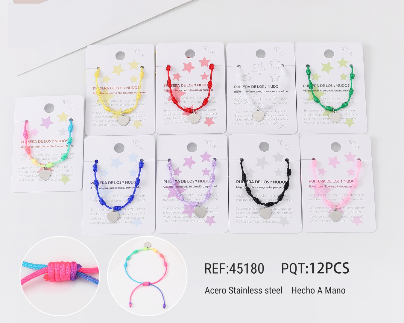 Pulsera 7 Nudos Colgante Acero Corazon