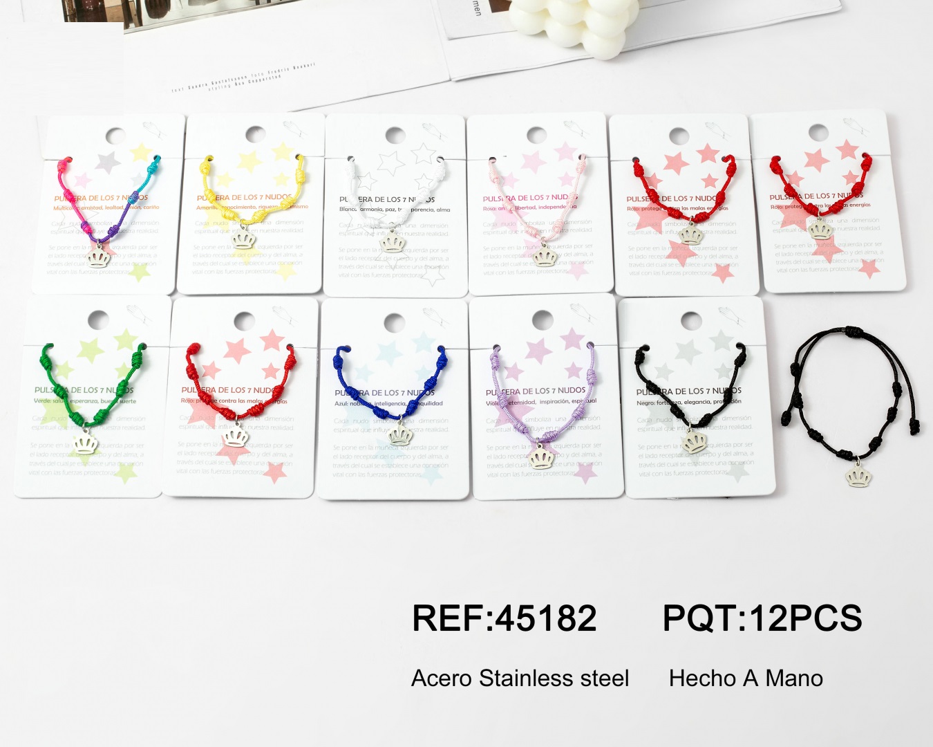 Pulsera 7 Nudos Colgante Acero Corona