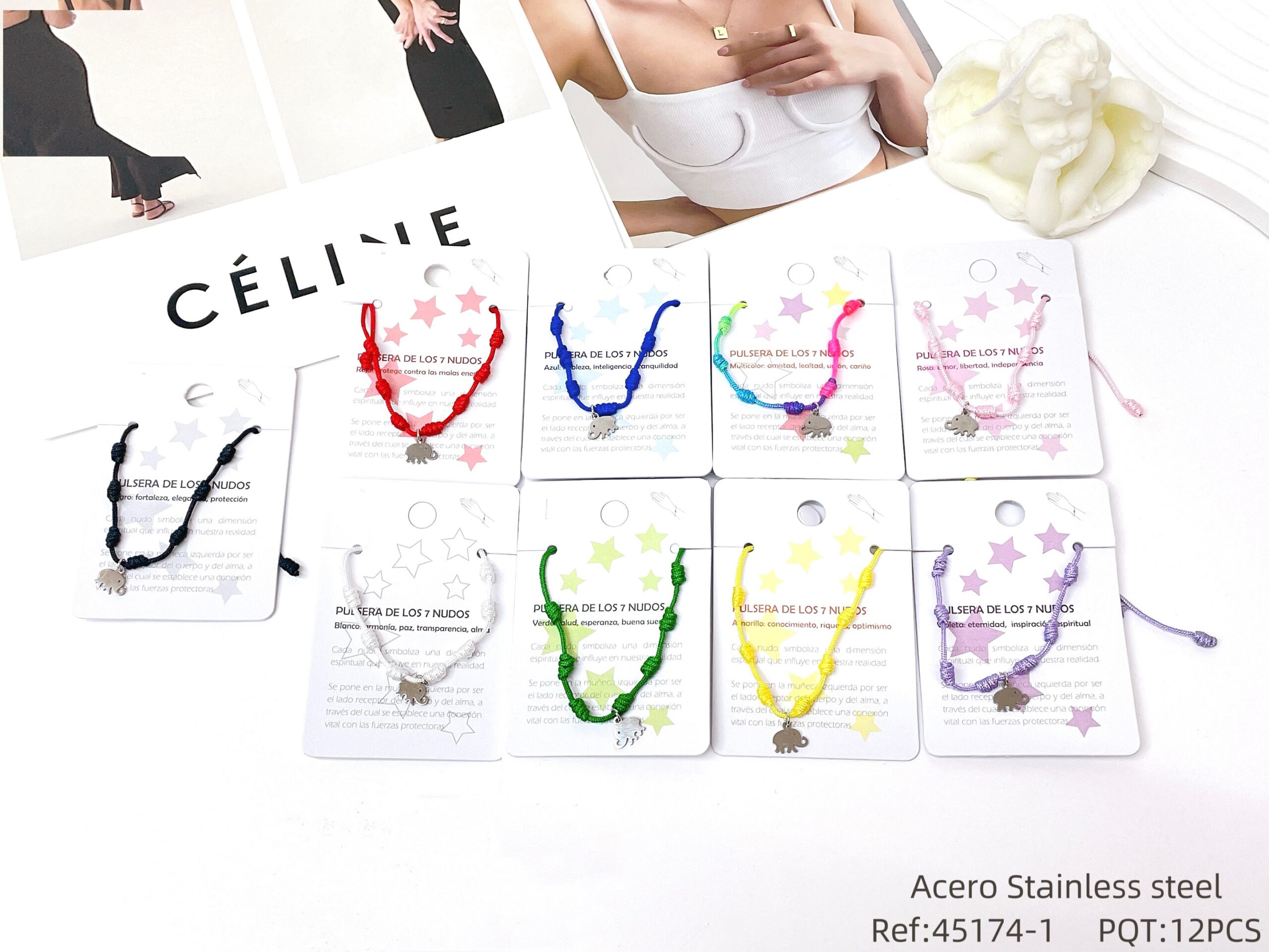 Pulsera Cuerda 7 Nudos Charm Elefante Plata
